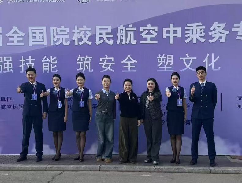 在刚刚结束的2025年第五届全国院校民航空中乘务专业技能大赛总决赛中,我校航空学院由杨雪、黄慧姝老师指导的代表队,通过区域选拔、层层角逐,最终获得“团体三等奖”以及两个赛项“优秀单项奖”。 据悉,全国院校民航空中乘务专业技能大赛历经数届发展,已成为我国民航职业教育领域具有最重要影响力的品牌赛事。大赛内容紧密对接“民航空中服务职业技能等级证书标准”,聚焦民航乘务岗位核心能力与职业素养,涵盖理...
