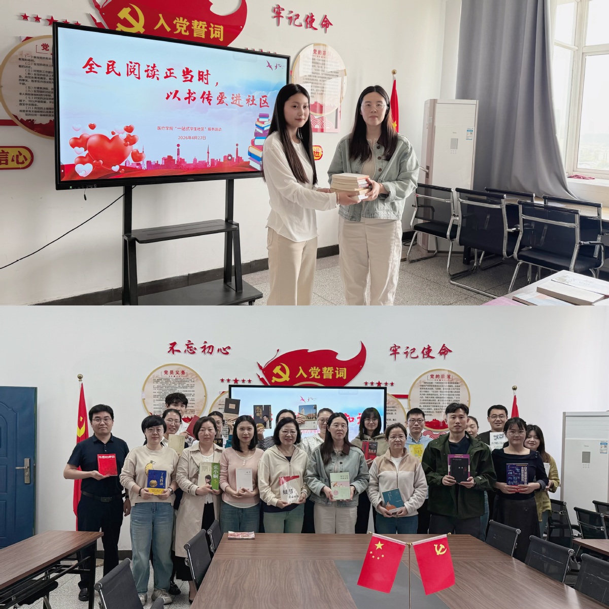 为深入推进书香校园文化建设,扎实提质一站式学生社区育人服务效能,搭建师生温情互助交流平台,4月27日,医疗学院组织开展“全民阅读正当时,以书传爱进社区”捐书活动。全院教师踊跃参与、暖心捐赠,合力共建社区阅读阵地,让书香浸润宿舍社区,让爱心流转青春校园。本次活动在一号宿舍楼“一站式”学生社区和主楼1311会议室分别设主会场,精心设置集中爱心捐书、闭环转运管护、分类规整上架、便民阅读阵地开放四个环节,全程秩...