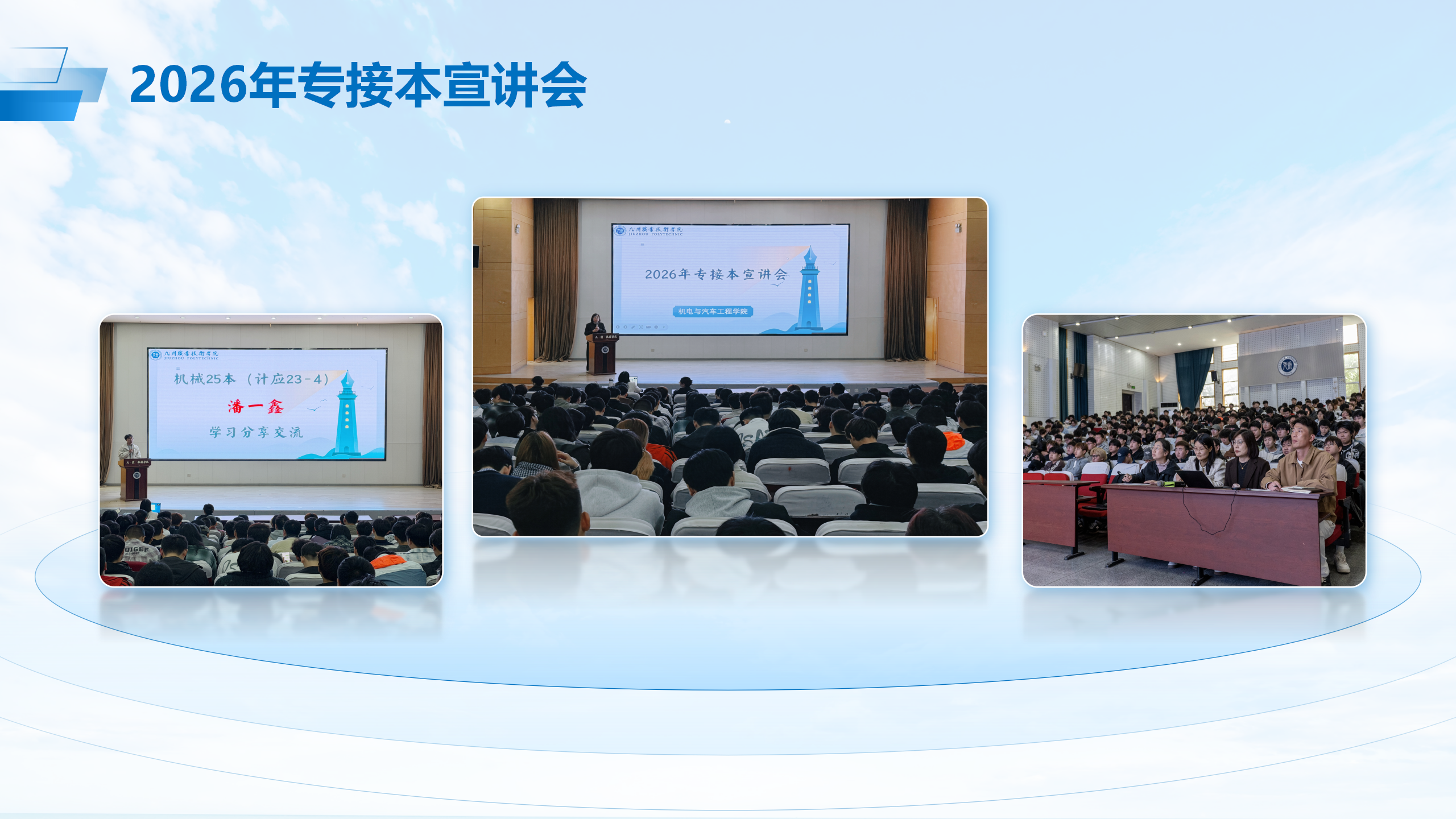 为帮助学生明晰“专接本”升学路径,解答学业提升疑惑,近日,机电学院面向2024级机电一体化专业群学生,开展“专接本”专题宣讲活动。宣讲聚焦南京理工大学机械工程专业“专接本”项目,详细介绍了人才培养、课程设置、考试科目、学位申请等重点方内容,并结合往届优秀学子案例,鼓励同学们坚定备考信念、合理规划学业。随后,2025级机械本科班潘一鑫同学分享了自身备考经验,从备考计划、重难点突破、时间分配及心态调整等方面,...
