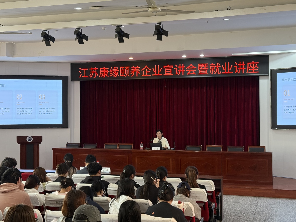 4月24日,医疗学院开展养老服务行业宣讲暨专场招聘活动。江苏康缘颐养有限责任公司总经理王玥、副总经理兼院长潘啸一行受邀到访,开展养老行业发展主题宣讲、企业推介及专场招聘面试活动,学院相关领导、养老服务相关专业师生全程参与。宣讲会上,招聘单位以《直击养老行业发展核心,解锁行业前景与机遇》为题,从行业现状、政策风口、市场机遇与人才发展四大维度,系统解读我国养老产业的万亿级市场潜力与发展趋势。分享中,结合康...