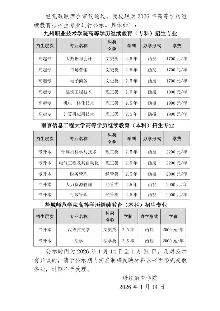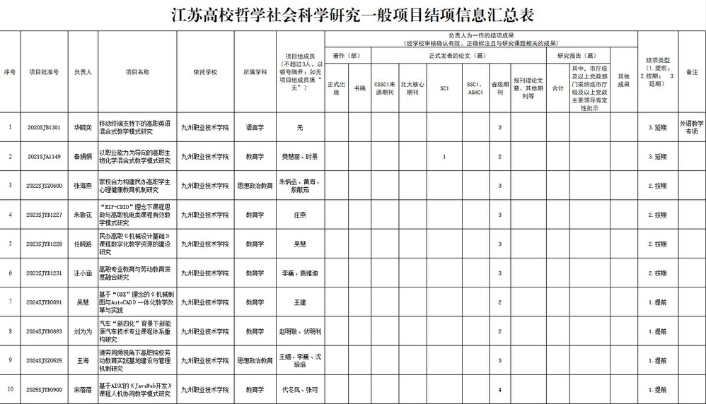 各二级单位:经材料审核与专家组评审,拟报送江苏省哲学社会科学研究项目《移动终端支持下的高职英语混合式教学模式研究》等10项课题结项,现予以公示。公示时间为2026年1月12日至1月16日。凡对公示有异议的,请于公示期内实名制将反映材料以书面形式交教务处,过期不予受理。教务处 2026.1.12