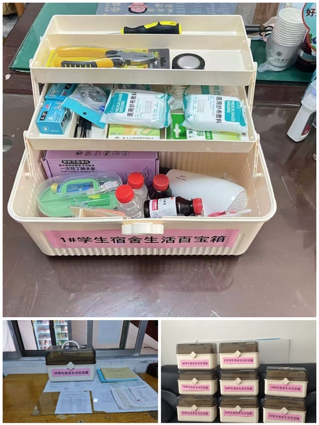生活百宝箱”物资配置兼顾实用性与针对性,涵盖小五金工具、共享文具、多接口充电线等日常高频使用的基础工具,以及创可贴、消毒用品、纱布、医用酒精、医用手套等应急物资两大类别。宿管中心工作人员表示:“将持续关注‘生活百宝箱’的使用情况,结合学生反馈不断优化服务质量,努力打造更贴心的宿舍生活支持体系,让‘共享互助’成为校园新风尚。”