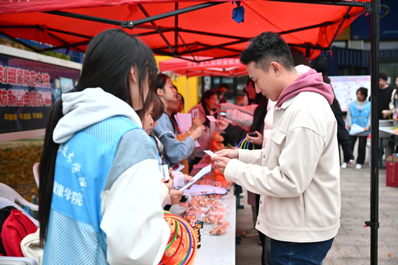 启动仪式现场,人头攒动,师生们热情高涨,共同开启这场兼具教育性与趣味性的消防知识盛宴。他们走向“消防安全承诺签名墙”郑重签名,写下对消防安全责任的集体承诺;他们参与“消防知识闯关”“圈住安全”等趣味游戏,在抢答中学习消防知识,在游戏中掌握安全技能。创意消防卡通钥匙扣、手提包等宣传品成为现场亮点,师生们争相领取,纷纷表示要“把消防知识带回家”,让消防安全意识融入日常生活。