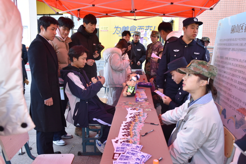 本次活动以互动竞答为核心载体,紧扣电信、网络、熟人等高发诈骗类型,聚焦识别技巧、转账风险规避、规范报警流程等实操要点,系统普及反诈核心知识,深度拆解“校园贷伪装兼职”“虚假购物退款”“冒充老师收取费用”等真实案例中的诈骗套路,向师生传授防范技巧。铜山派出所民警同志带领我校国防班学生干部实时答疑,发放竞答纪念品,现场氛围热烈高涨。