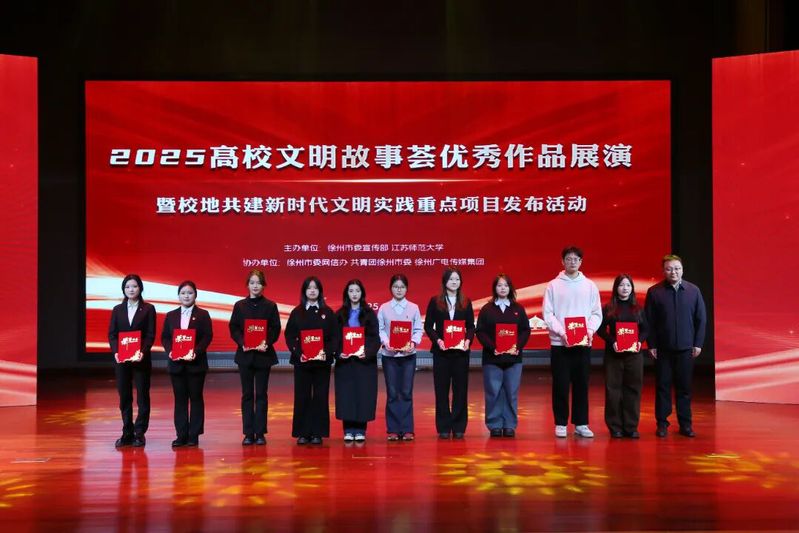 近日,由中共徐州市委宣传部、市委网信办、共青团徐州市委、徐州广电传媒集团联合主办的“好人好事好彭城·青年青春话文明”驻徐高校文明故事荟活动圆满落幕。在校团委的精心组织与统筹协调下,我校学子奋勇争先,凭借扎实的宣讲功底与真挚的情感表达取得佳绩,充分展现了九州青年向上向善的精神风貌!