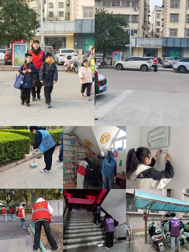 校园外,志愿者走进无名山社区、凤凰山社区、樵村社区,开展敬老助老、公益宣传、环境清洁、便民服务等实践活动,并在樵村小学设立护学岗,守护学生平安上下学,以实际行动服务基层、奉献社会。