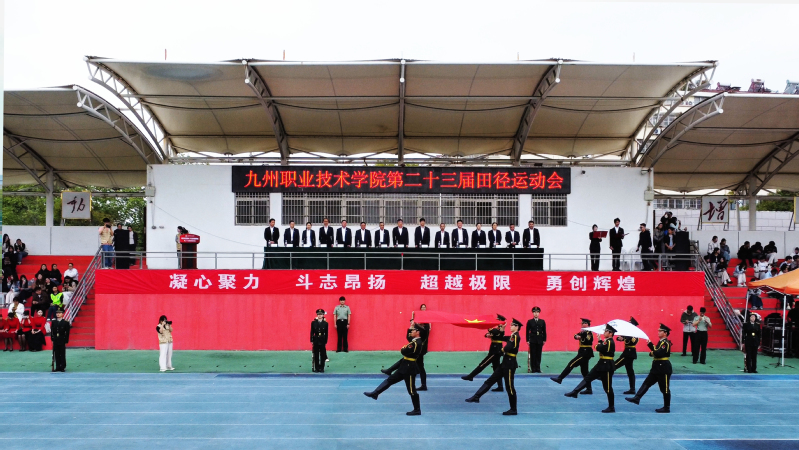 伴随着雄壮激昂的运动员进行曲,国旗方队、校旗方队、彩旗方队昂首阔步、依次入场。各二级学院代表队、教职工代表队、裁判员代表队精神饱满、步履铿锵,充分展现出九州师生昂扬向上、团结奋进、锐意进取的良好精神风貌。全场肃立,奏唱中华人民共和国国歌,庄严氛围激荡整个校园。