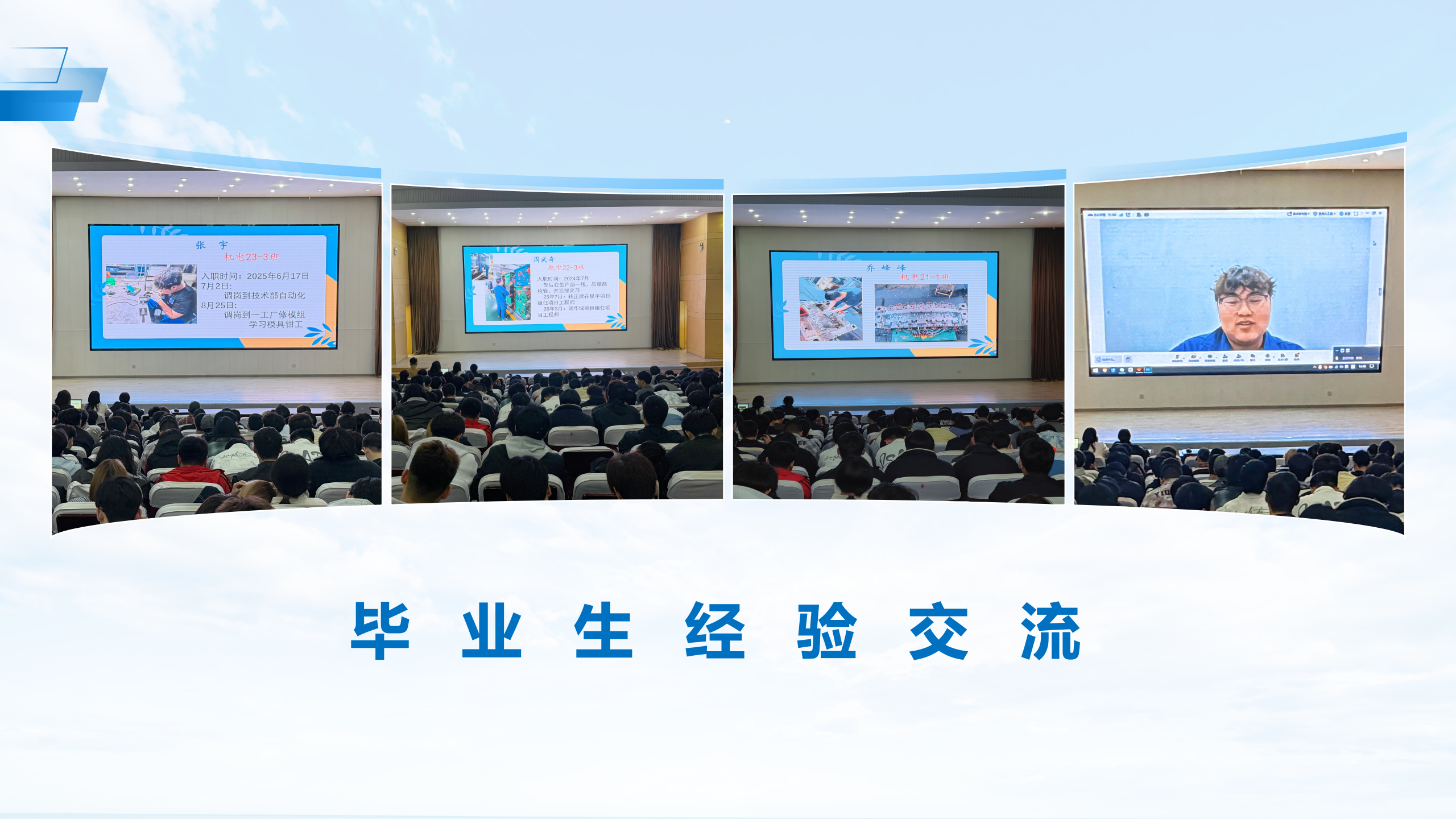 活动伊始,苏州友成机工有限公司(以下简称“友成机工”)人力资源对2024届学生实习情况进行全面总结,高度评价了校企协同育人的阶段性成果,重点赞扬了本届毕业生在项目实践能力与职业素养方面的突出表现,并寄语在场在校生:“珍惜校园与企业双重课堂,脚踏实地锤炼专业本领,为未来职业发展筑牢根基。随后,友成机工往届毕业生代表机电23-3班张宇、机电22-3班周武奇、机电21-1班乔峰峰三位同学,结合在企业的工作经历分享成长感悟,从校园到职场的成长历程、岗位历练中的进步轨迹以及应对工作挑战的方法技巧,为在场2024级学生提供了宝贵的实践参考,助力其提前规划职业路径。