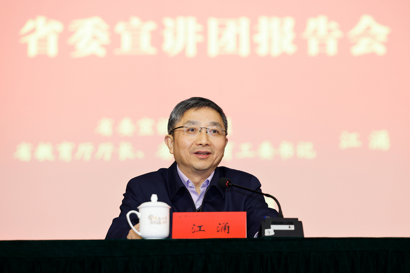 江涌指出,学习好、贯彻好全会精神是全省教育系统必须坚决扛起的重大政治责任,要以高度政治自觉抓好学习宣传贯彻,进一步优化思路、细化举措,精心谋划好教育事业发展规划,全面落实好立德树人根本任务,加快构建好高质量教育体系,探索完善好教育科技人才一体推进协调机制,努力彰显好江苏教育的国际影响力,统筹好教育高质量发展和高水平安全,确保全会各项重大部署在全省教育系统全面落到实处。