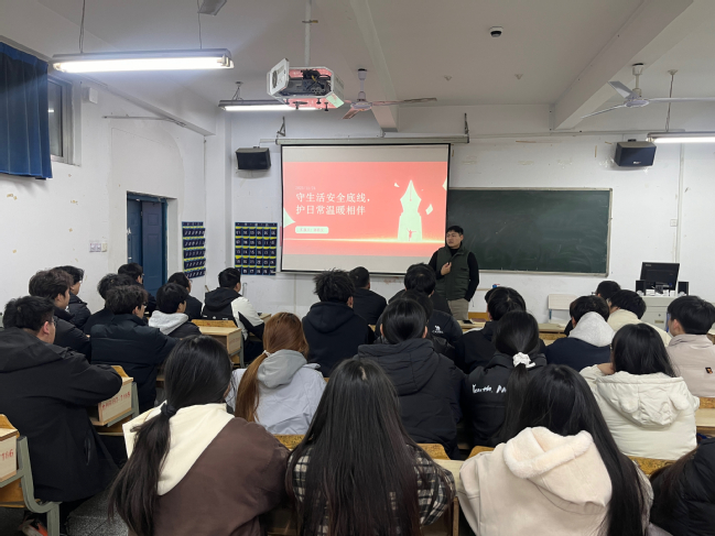 在为期1个月活动中,各班级打破传统安全教育单一化模式,将安全管理、心理疏导、习惯养成与成长引导有机融合,积极开展了丰富多彩的活动。例如,针对秋冬季安全风险防控关键节点,班会精准锚定学生校园生活核心安全领域,通过典型宿舍用电违规案例深度剖析、消防器材实操演示与逃生路线模拟,将抽象的安全规范转化为具象的实践认知,切实强化学生用电安全、交通安全、反诈防骗及传染病防控意识;针对学业适应与心理调适需求,学院邀请辅导员与高年级优秀学生分享情绪管理技巧与学业规划经验,通过互动、案例交流等形式,帮助学生缓解成长焦虑,构建积极心理状态;围绕校园文明建设与集体生活和谐发展,班会以“无烟校园”“整洁宿舍”为主要话题开展专题讨论,引导学生树立“主人翁”意识,在共识共建中培育良好生活习惯,营造互助友爱的集体氛围。同时,班会还融入国家助学金政策解读与“励志榜样”事迹宣讲,将物质帮扶与精神激励相结合,既让学生感受到政策温度与学院关怀,更以榜样力量激发学生自强自立、奋发向上的内生动力。