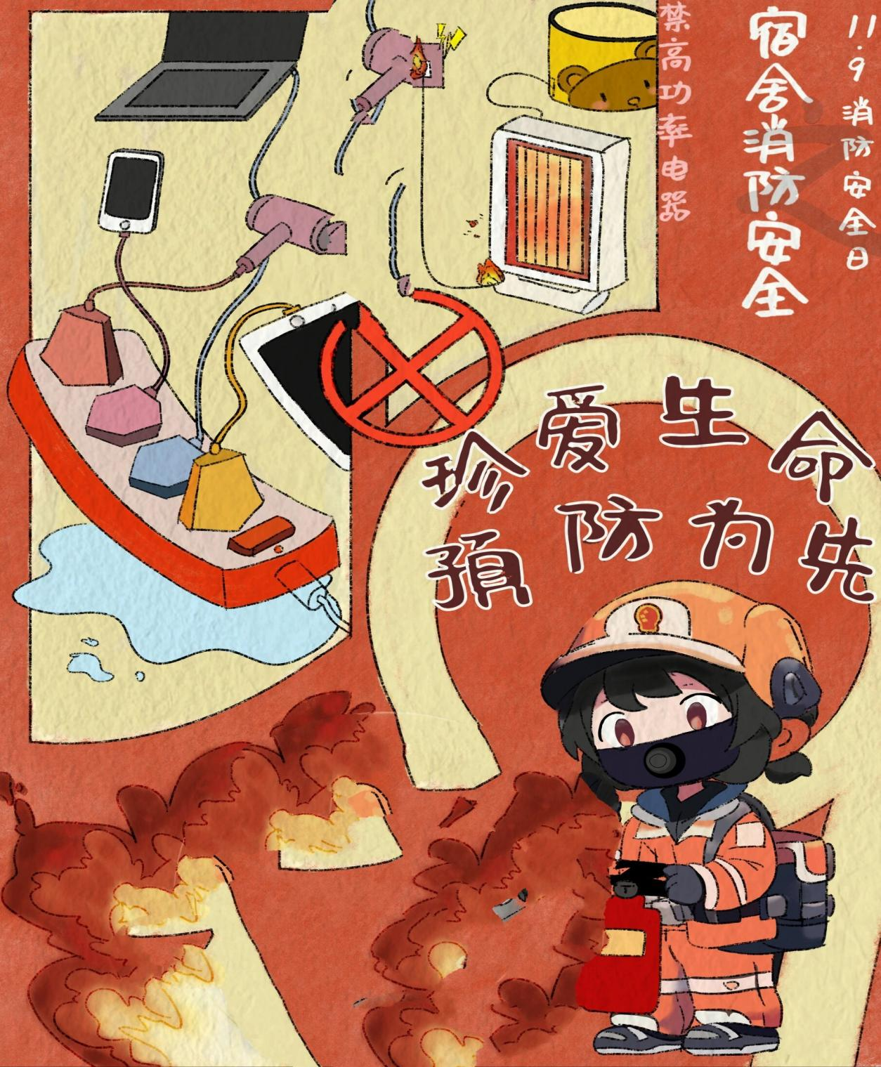 宿舍内严禁使用明火及违章电器(如热得快、电饭锅等),不私拉乱接电线,杜绝电动自行车及电瓶入室充电。离开宿舍前请切断电源、关闭水阀,及时清理阳台、走廊杂物,共同防范火灾风险。