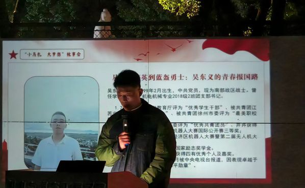 首先, 任晓路以“小马扎坐下去,是务实作风;故事会讲出来,是育人智慧”点明活动内核,她勉励同学们从榜样的奋斗故事中汲取前行力量。丁鹏深情讲述了联合国和平勋章获得者、优秀校友吴东义从“校园菁英”到“蓝盔勇士”的报国之路。他通过一帧帧珍贵的照片、一段段真实的经历,生动再现了吴东义如何从一名刻苦钻研的机电学子,成长为在国际维和舞台上用专业技能捍卫和平的忠诚卫士,其“将个人理想融入国家使命”的选择深深震撼了在场每一位同学。在朋辈交流中,国家奖学金获得者潘一鑫系统梳理了从课堂学习到竞赛求职的“实战地图”;国家励志奖学金获得者蒋伟炟讲述了在逆境中坚守理想的心路历程,并分享了高效管理时间的实用方法;优秀学生干部获得者邓智谦结合自身组织多项校园活动的经历,分享了在服务同学中锻炼能力、在承担责任中收获成长的感悟;先进集体代表周杭则揭秘了班级在学风建设与凝聚力提升方面的关键经验。在自由提问环节,同学们围绕专业学习、竞赛准备与生涯规划等话题踊跃发言,优秀代表们倾囊相授,思想的火花在真诚对撞中不断迸发。