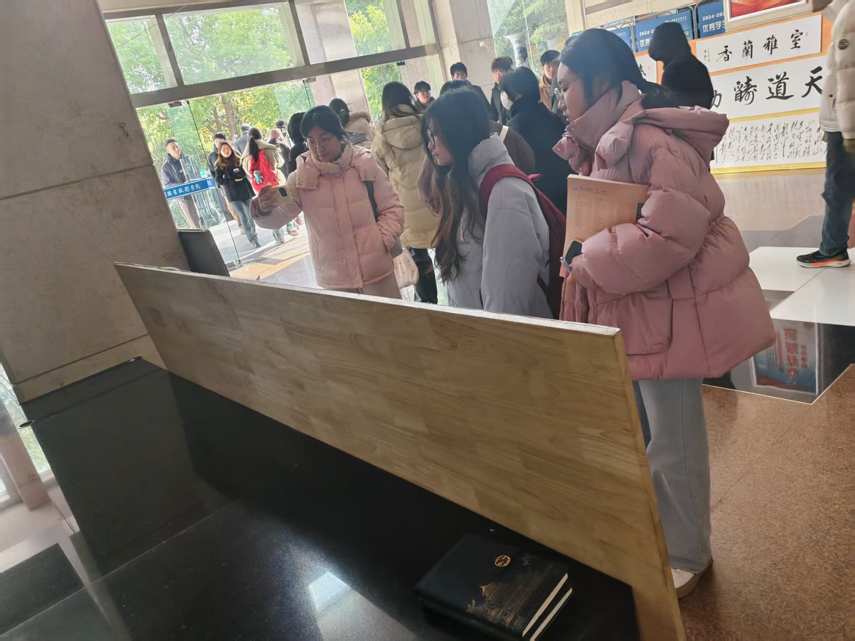 本次比赛以书法为载体,旨在弘扬中华优秀传统文化,提升学生艺术修养,营造书香浓郁的宿舍与校园氛围。活动自启动以来,得到学院及全校同学的积极响应,共收到来自不同专业、不同年级的投稿作品百余幅。作品题材丰富,形式多样,既涵盖古典诗词、名言警句,也可见同学们自创的寄语与格言,展现出扎实的书写功底与独特的艺术感悟。展览现场,学生作品与名家力作并置呈现,形成一场跨越年龄与阅历的艺术对话。软笔作品或苍劲有力、或清雅飘逸,笔触间尽显翰墨情怀;硬笔作品则工整而不失灵动,于方寸格线中勾勒出年轻学子的细致匠心。特邀嘉宾的作品气势恢宏、法度严谨,为学生创作提供了鲜活参照。许多师生在展板前驻足细品,轻声交流心得,有的同学还在自己喜爱的作品前拍照留念。展厅内墨香隐隐,光影从容,让人沉浸于书香雅韵之中,深刻感受到传统文化在校园生活中的生命力。