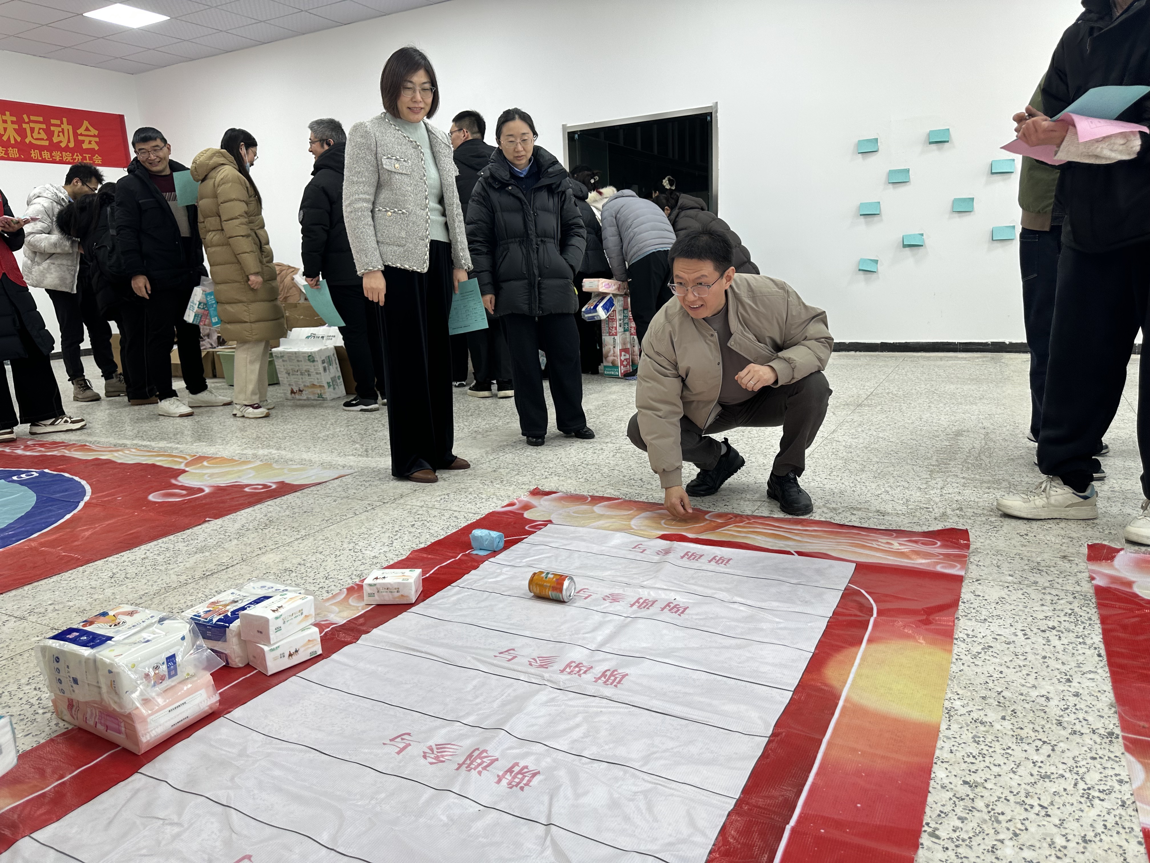 为深化团队建设、丰富教职工业余生活,12月16日中午,机电学院在会议室举办“同心筑梦·聚力同行”教职工趣味运动会。本次活动由学院党支部与分工会联合组织,全体教职工积极参与,旨在通过轻松有趣的运动形式增进交流、凝聚合力,进一步营造团结协作、积极向上的学院文化氛围。