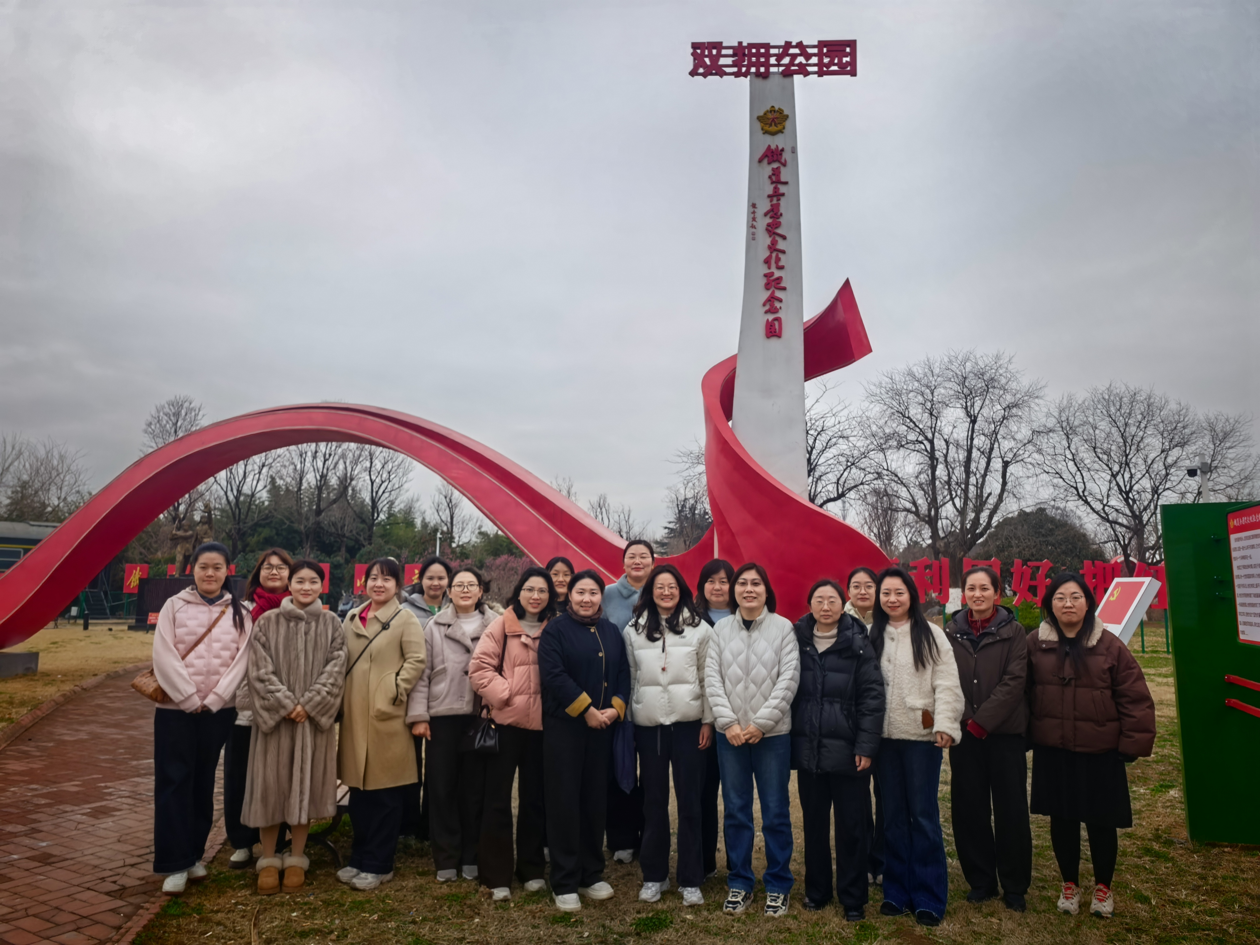 阳春三月,生机盎然。为庆祝第114个“三八”国际妇女节,3月6日下午,机电学院党支部与学院分工会联合组织全院女教工走进徐州铁道兵公园,开展了一场别开生面的主题教育活动,向辛勤耕耘在教学科研一线的女同胞们致以节日的诚挚问候。