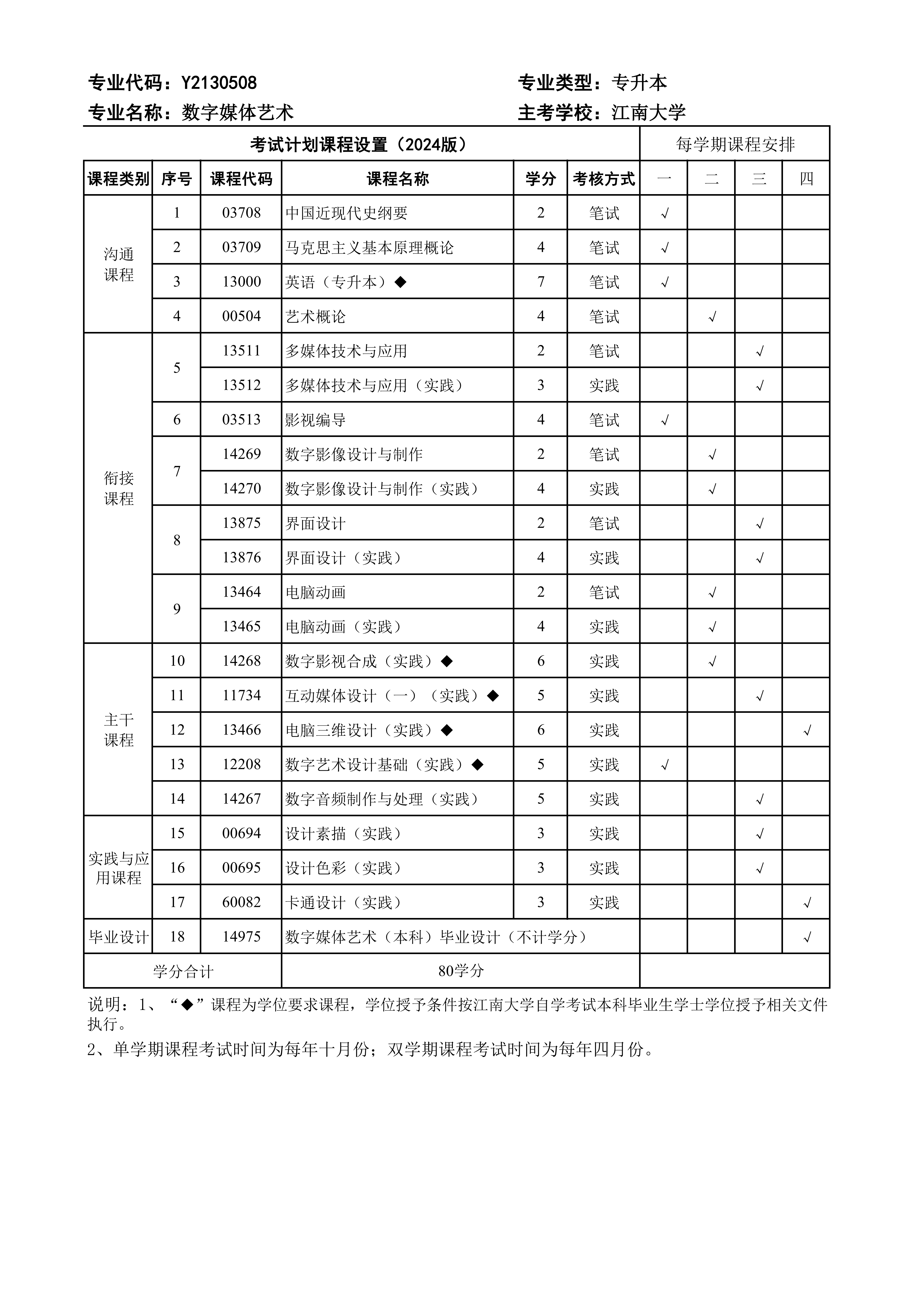 专接本教学计划:数字媒体艺术Y2130508