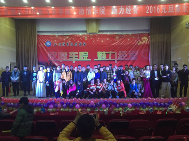 新年的钟声即将敲响,时光的车轮又留下了一道深深的印痕。 公历2015年12月23日晚18点30分,九州职业技术学院经济与管理系携手中锐汽车学院共同举办了以“激情车院,魅力经管”为主题的2016年元旦晚会。院党委书记、院学工处、院团委等相关部门负责人,院长以及学院教师受邀出席了晚会。经管系主任张道响、车院院长王朝忠以及来自全校各系的500余名学生观看了晚会。学术报告厅厅里灯光炫动,人头攒动,掌声雷动。晚会恢弘大气,尽展九州学子的青春风采。