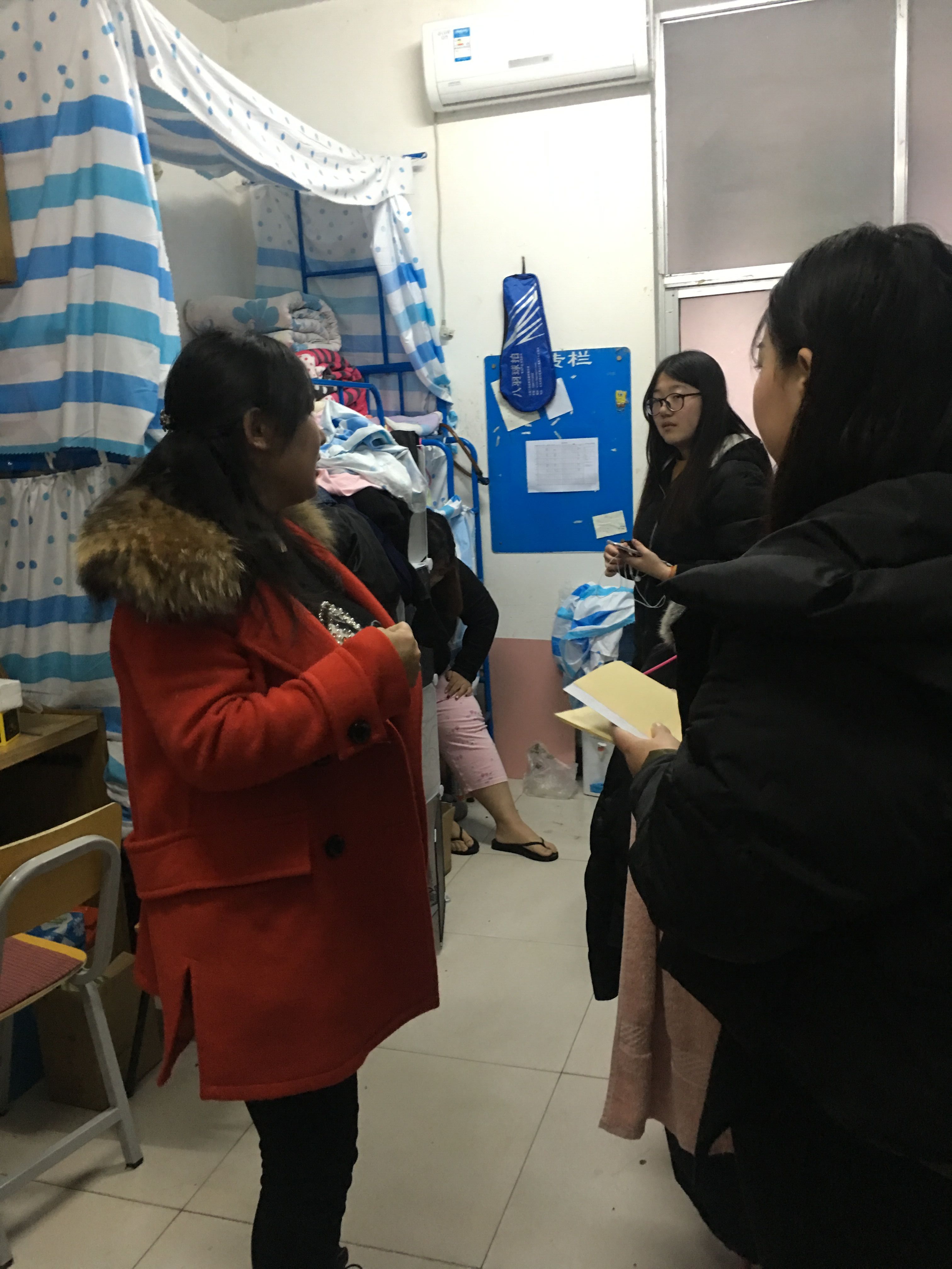 走访、检查中,辅导员老师深入学生宿舍,先了解该宿舍成员是否都已安全返校,并且各个班级返校情况也做了详细的记录和反馈。另外结合明天上课情况督促同学们正常作息,准备明天上课的地点和书籍。除此之外,老师们还认真检查了学生的室内卫生、安全用电、文化建设等情况。从检查情况看,绝大部分寝室情况良好,但仍有个别寝室卫生状况较差,存在安全隐患,对于存在的问题,辅导员及时教育同学们要共建和谐安全的学习生活环境,并对同学提出了具体要求保持宿舍卫生,创建良好的生活环境。同时各辅导员老师也在走访过程中针对性的和同学们谈心,关心学生平时在学校的生活情况,并为同学们细心的回答一些问题。