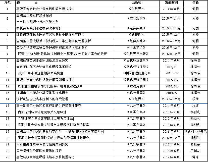 经过近20年的历练和沉淀,九州职业技术学院会计专业形成了一支老中青结合、理论基础扎实、实践技能丰富的“双师型”优秀教学团队。