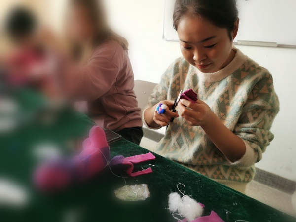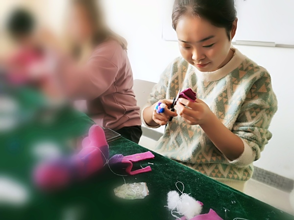 “通过技能比拼,挖掘学生中的手工能手,并以她们为‘导师’,为我们下一步带动更多的同学,提升技能水平做准备。”社会公共服务系武艳主任这样说。据武主任介绍,社会公共服务系女同学居多,很多女同学原本就喜爱十字绣、毛衣编织、绘画等手工制作,具有一定的手工基础,但她们的作品普遍缺少设计感,也找不到合适的平台进行展示。因此,社服系从学生的技能提升和职业发展角度出发,在授课和实训的过程中,融入更多的创意手工制作实操,将年轻人的思想创意注入手工作品中,让她们的作品更具美观度和实用性,也使得学生的手工能力具有一定的可延续性,更好的匹配学生们的专业和职业,增强学生的职业技能水平。