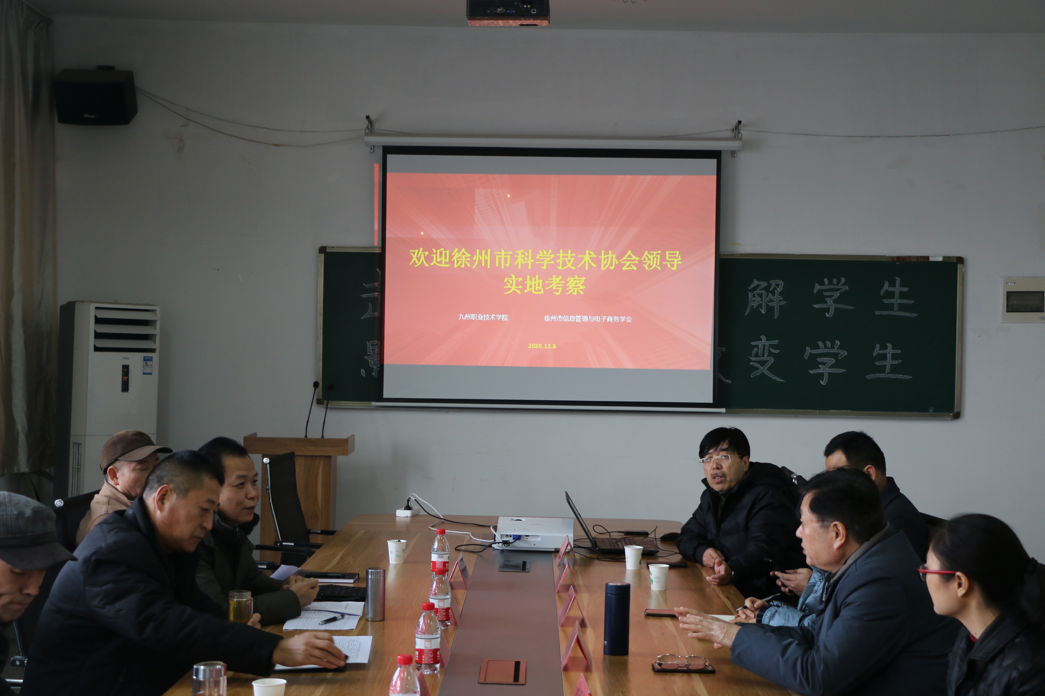 徐州市科协宋恒主席、刘训勇部长、曹建华、孙先奎、鲍凤才和徐州市信息管理与电子商务学会秘书长王贺朝等一行6人于12月8日上午9点莅临我校,对经济与管理系跨境电商创新创业服务示范基地和企业科技工作站开展工作情况进行检查。我系张泮州主任,教学主任何颜,商贸教研室主任刘雨花,徐州鼎慧网络科技有限公司总经理顾荣军等人陪同参加。
