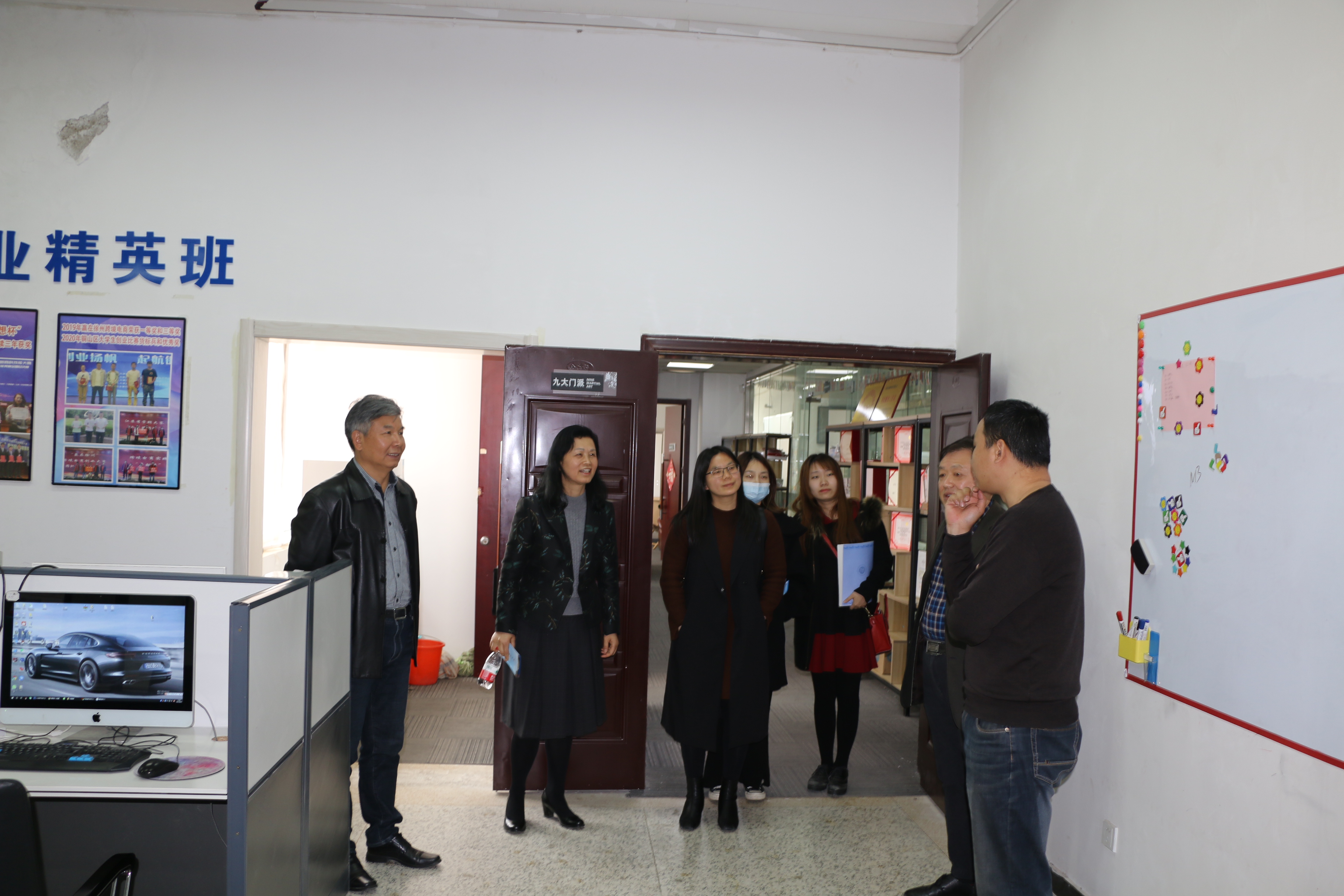 最后一行人参观了我院跨境电商孵化基地,对入驻企业的经营状况,校企合作与融合的运作方式,学生在基地实习、实操具体教学组织方式等进行了实地考察,听取了鼎慧网络科技有限公司总经理、九州学院特聘企业创业导师顾荣军的详细介绍,翻阅了基地学生学习成长档案、技能大赛成果资料等,非常认可我院引企入校,培养学生实践动手操作能力的做法,并表示今后在这方面加强合作与交流。