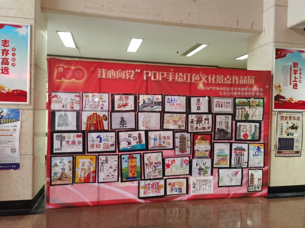为庆祝中国共产党建党100周年华诞,回顾中国共产党艰苦卓绝的创业历程,展现举世瞩目的伟大成就,九州职业技术学院社会公共服务系党支部结合《环境创设》、《美术》课程中的POP手绘和绘画技巧,在王璐琨老师的指导下,举办了一场别开生面的红色POP手绘活动。以POP手绘手法书画打卡红色文化景点名称,从红色文化地标的历史、建筑风格、代表人物及所在城市等元素中汲取灵感,通过实景图绘画转译等方式加工提炼元素,再造景点名称的POP手绘风格表现,为建党100周年献礼。