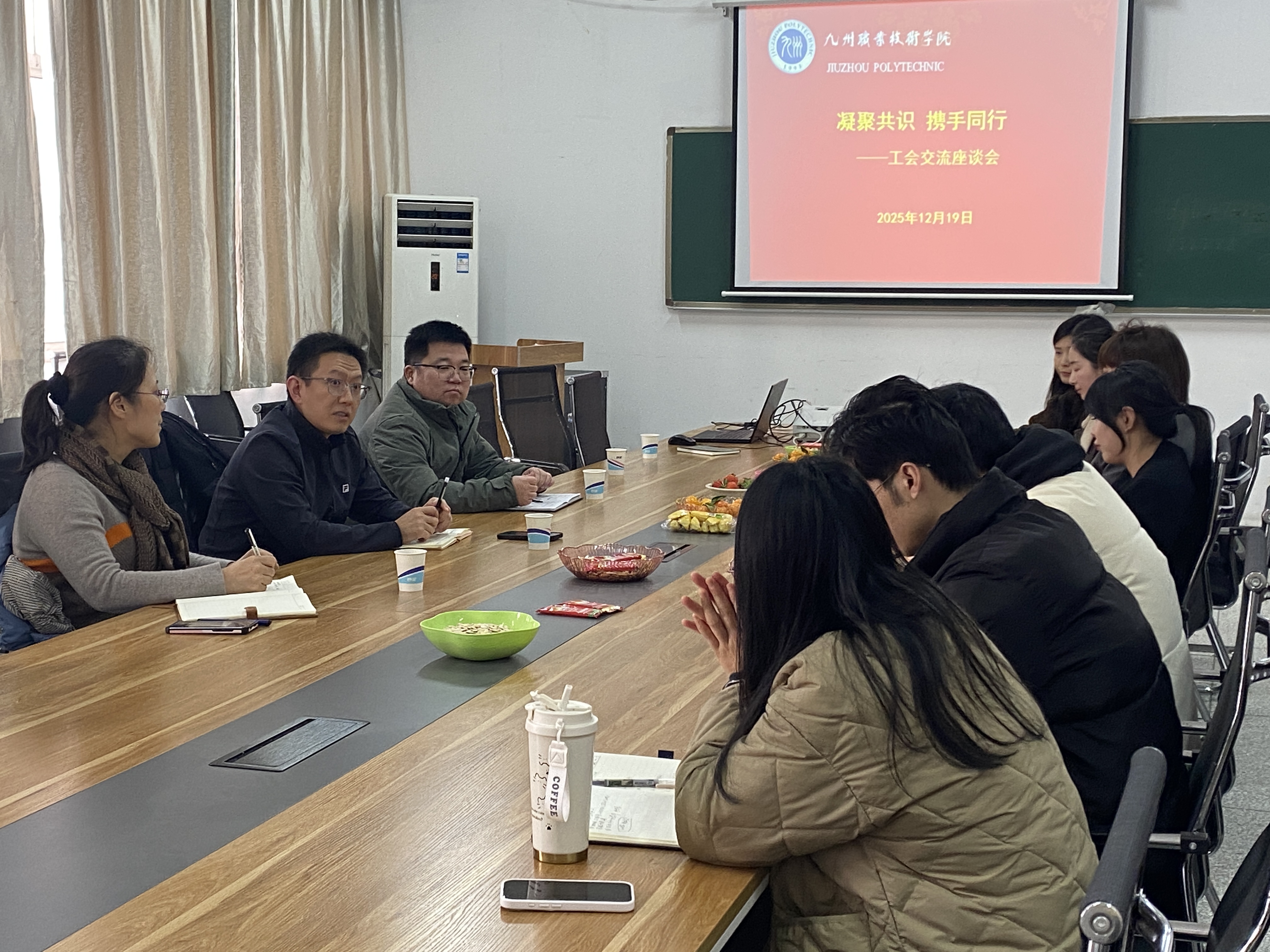 为进一步提升工会服务质效,倾听教职工心声,2025年12月19日,管理学院工会召开职工座谈会,校工会主席吕苏南与学院教职工代表齐聚一堂,围绕教职工福利优化、活动开展等议题展开深入交流,共商学校工会建设发展新思路。