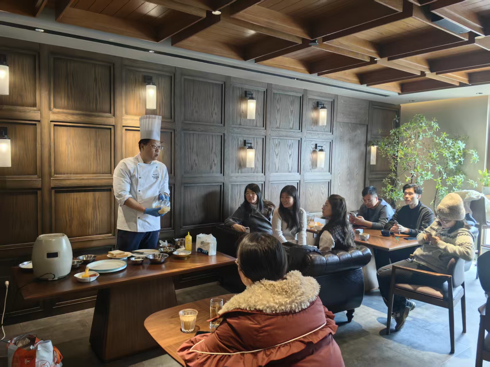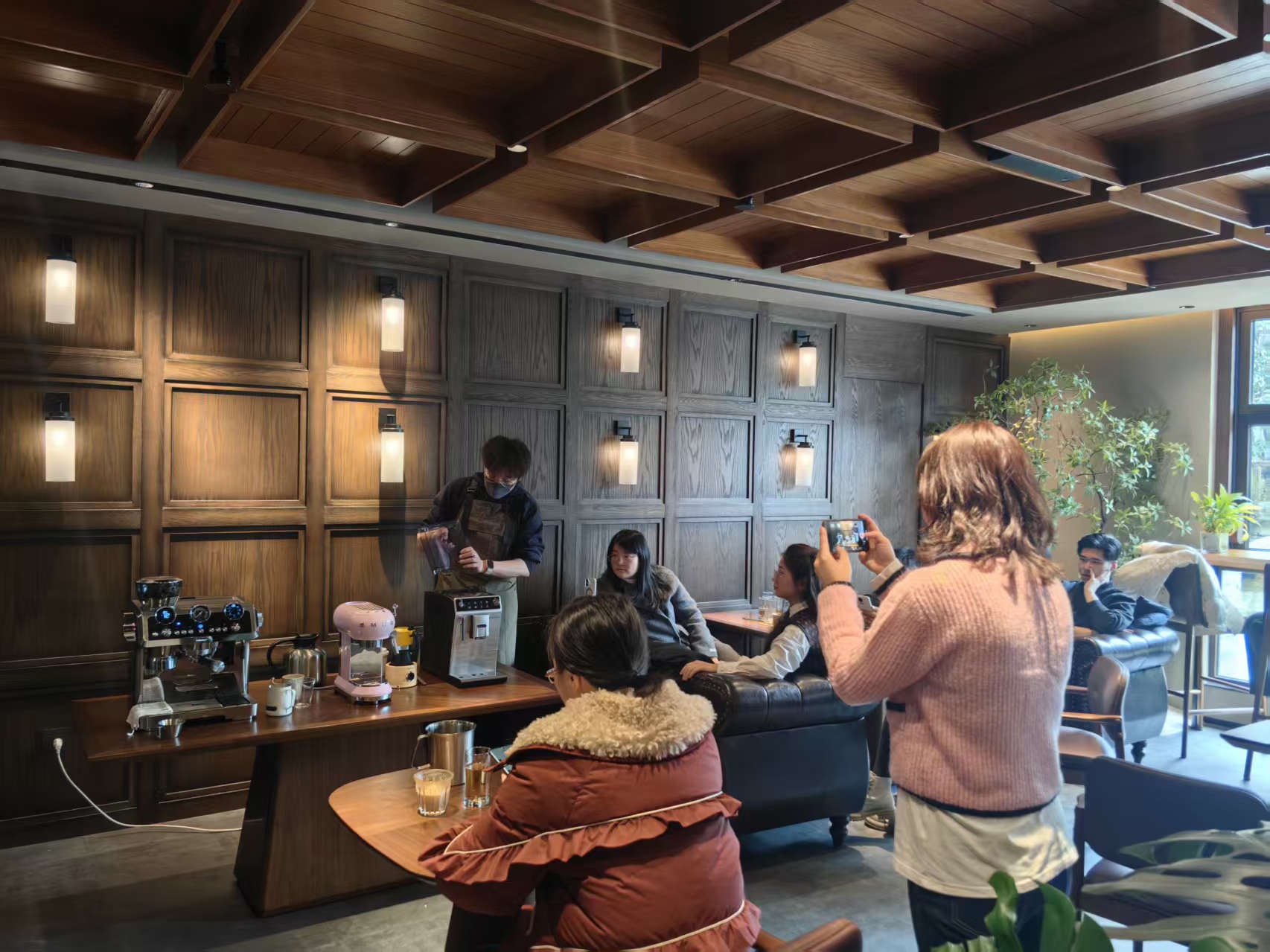 活动现场温馨雅致,轻柔音乐营造松弛氛围。学院分工会提前备好新鲜食材、专业咖啡器具及伴手礼,细节处尽显关怀。
