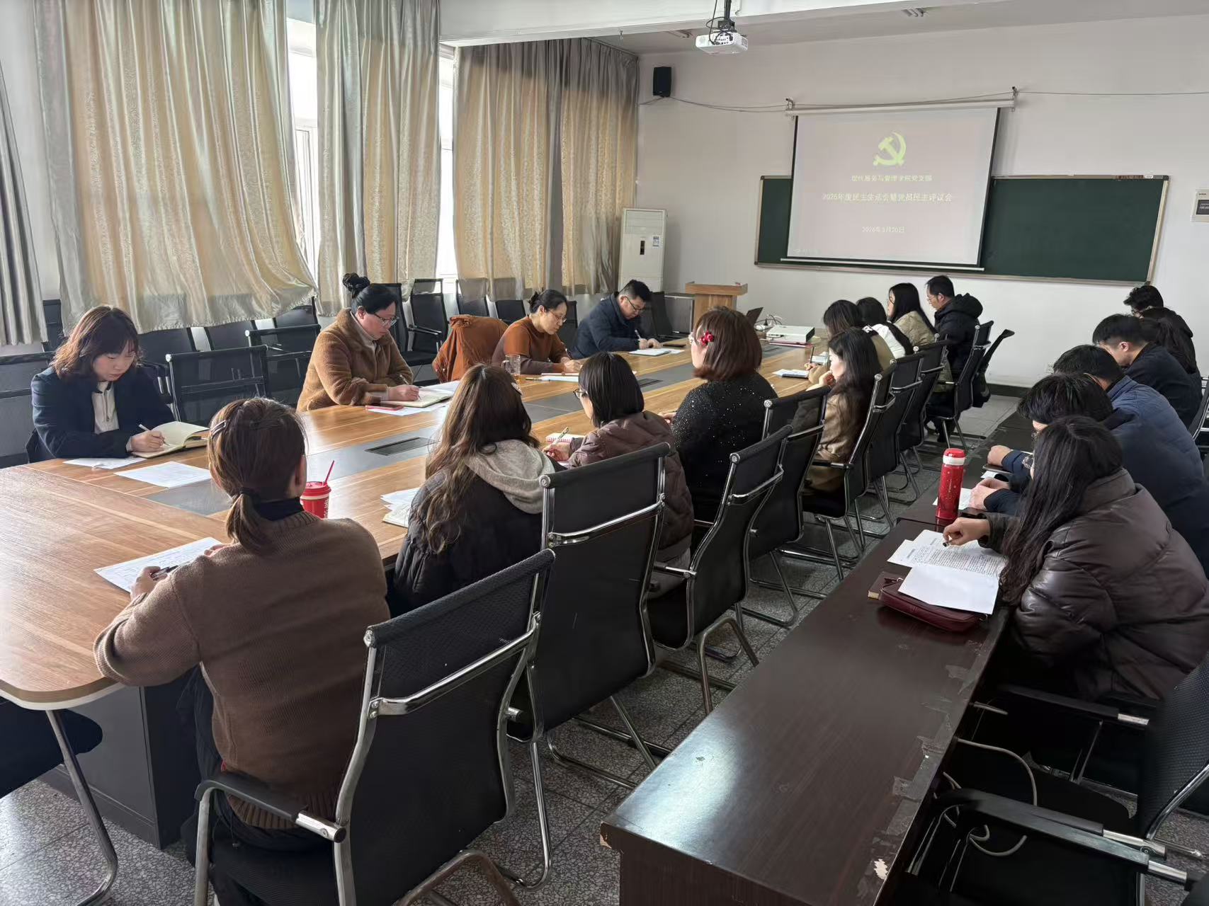 3月20日下午,管理学院党支部在学院会议室召开2025年度组织生活会暨民主评议党员大会。会议由党支部书记武艳主持,全体党员参加。