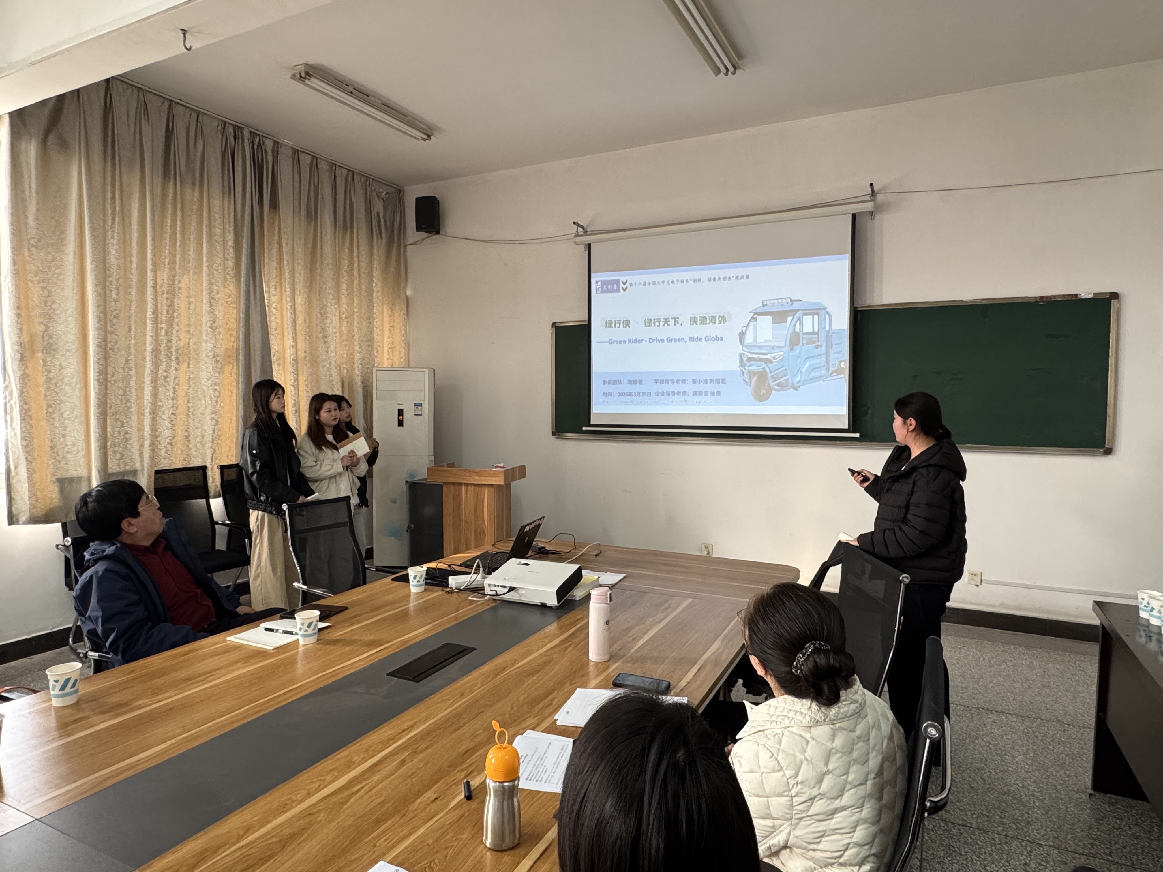 随后,学院两支参赛团队分别围绕跨境电商实战赛和文旅电商常规赛项目开展路演,展示了项目背景、创意设计、商业模式及阶段性成果。