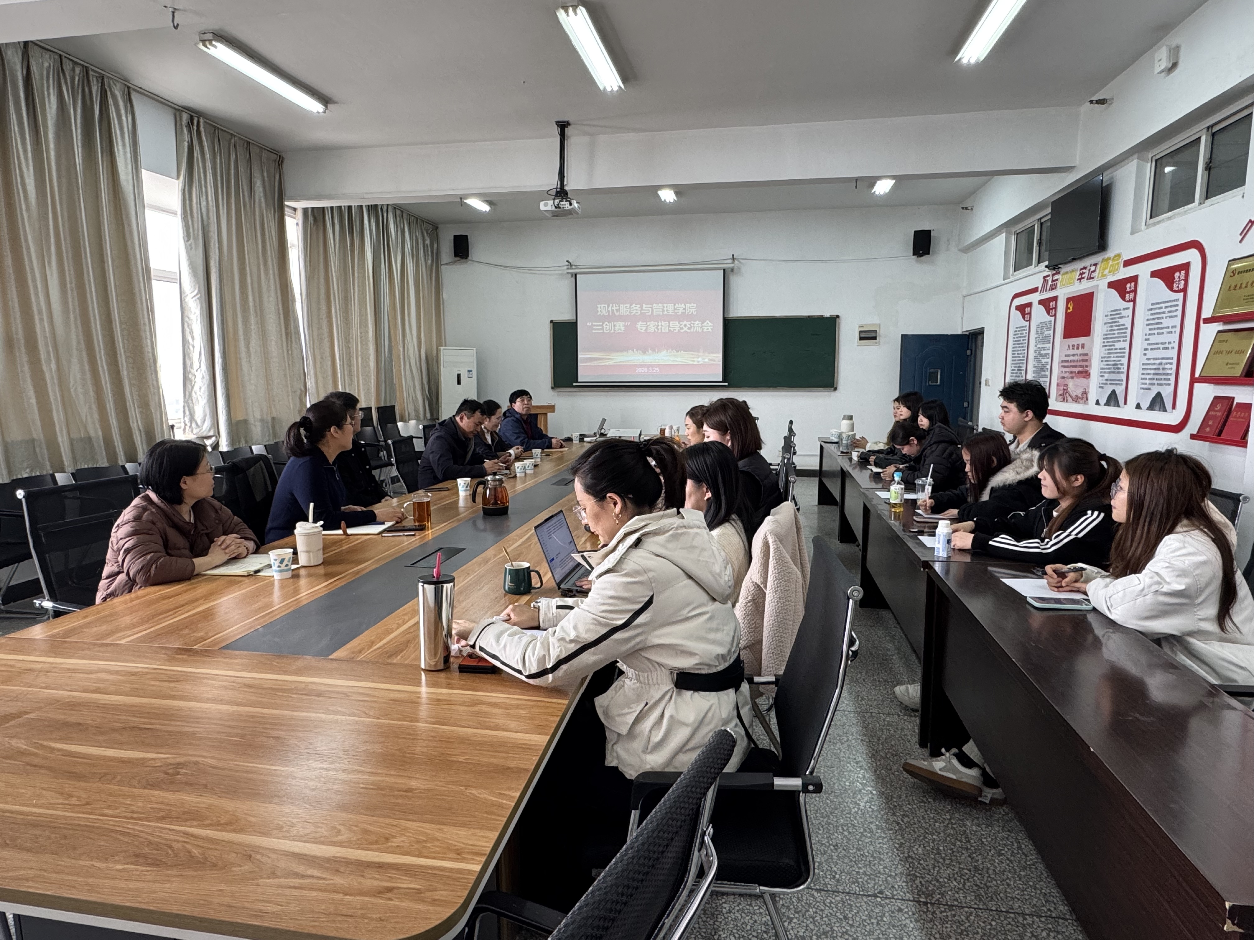 为提升学生竞赛水平,精准把握赛事方向,3月25日下午,管理学院于学院会议室召开第十六届全国大学生电子商务“创新、创意及创业”挑战赛专家指导交流会。学院领导班子、管理教研室全体教师出席会议,特邀电子商务专业群校外专家及企业界专家到场指导,为参赛团队提供专业咨询与建设性意见。