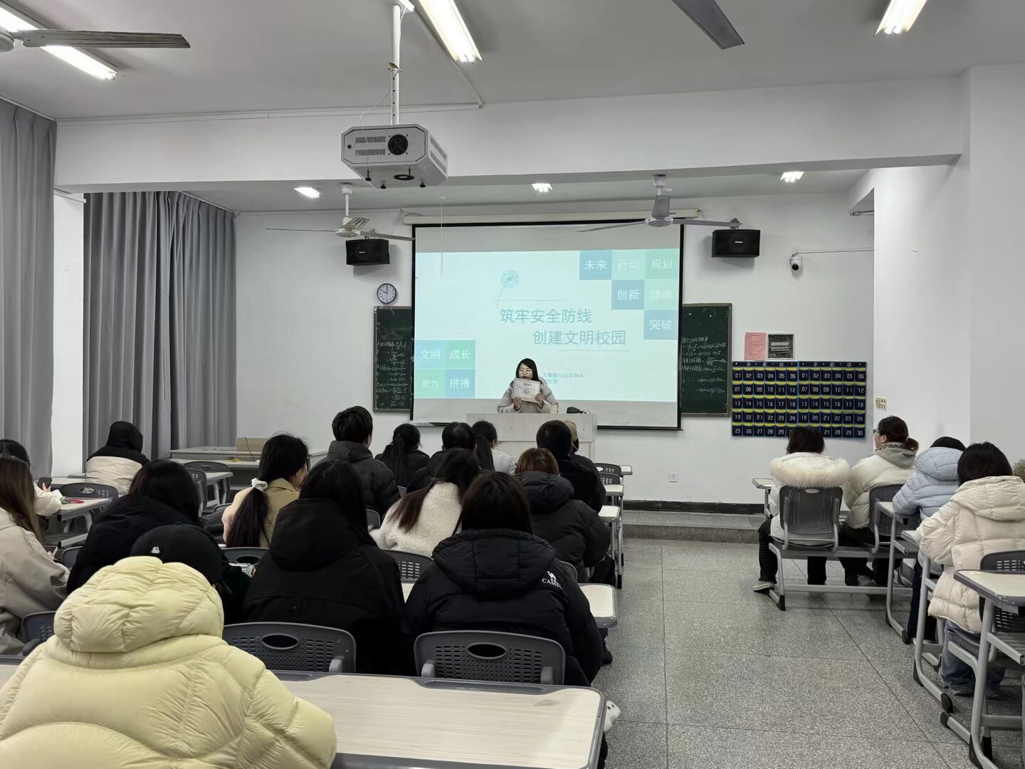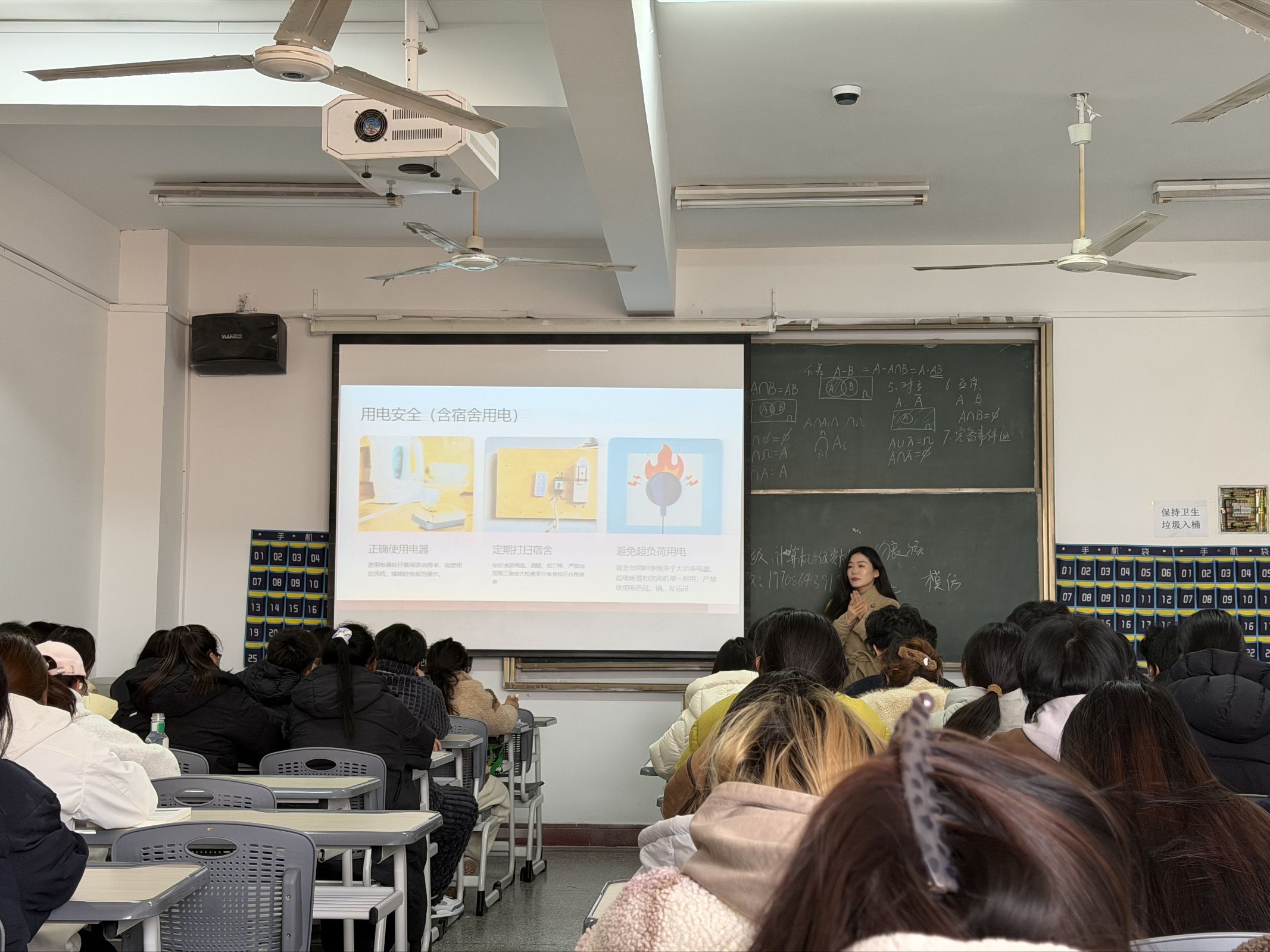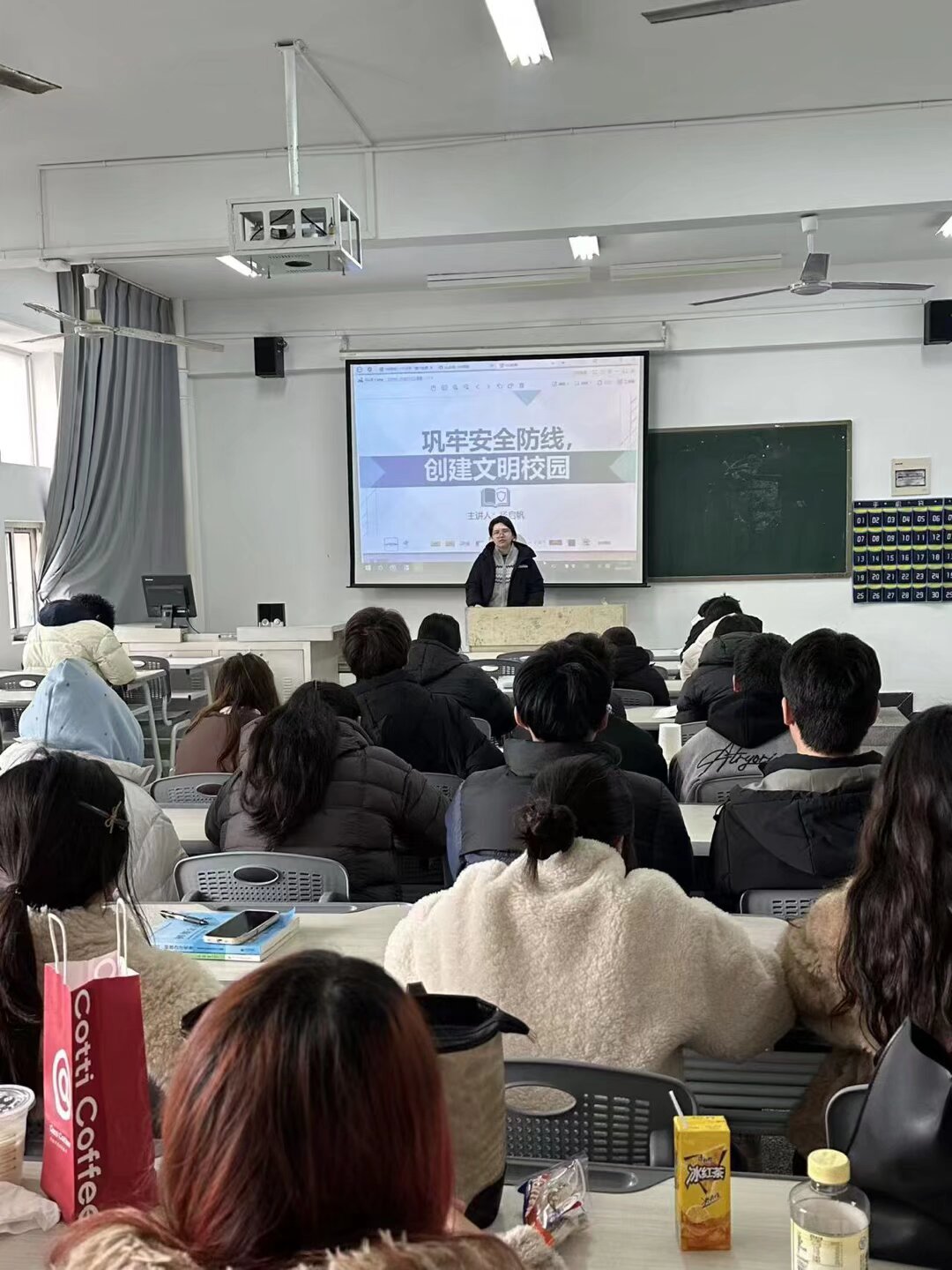 本次主题班会紧扣校园安全薄弱环节,将文明礼仪培育与安全教育深度融合,内容覆盖生命安全、用电安全、防火控烟、防盗防骗、出行安全、心理健康等多个维度。班会中,各班辅导员老师结合典型校园安全事故案例,以 PPT 演示、视频播放、案例剖析等形式,直观呈现安全隐患的危害;针对消防安全,重点讲解火灾成因及逃生技巧,强调宿舍严禁使用违规电器、杜绝私拉乱接电线等硬性要求;围绕网络安全与防盗防骗,结合近期高发诈骗案例,拆解诈骗手段、传授防范技巧,引导学生保护个人信息、警惕网络陷阱;在文明礼仪板块,从课堂礼仪、宿舍相处、校园公共秩序等细节入手,倡导文明用语、规范言行,推动文明素养与安全意识同步提升;对于控烟工作,系统讲解烟草对青少年身心健康的危害,重点解读校园全面控烟规定,明确教学楼、宿舍楼、操场等公共区域的禁烟要求,普及二手烟、三手烟的健康风险。