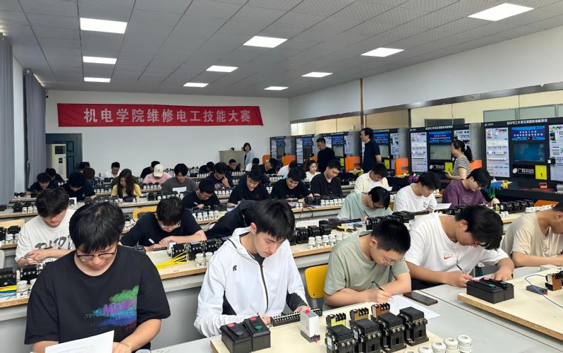 5月14日下午,机电与汽车工程学院2025年职业教育活动周维修电工技能大赛在实训中心成功举办。40名优秀学子从层层选拔中脱颖而出,同台竞技,充分展现了新时代职教学子的专业风采。机电学院主要负责人、教务处相关负责同志全程观摩指导,为选手们加油打气。