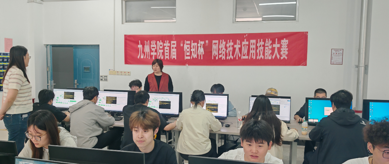 5月16日中午,机电学院主办的首届“恒知杯”网络技术应用技能大赛在主北306实训室火热开赛。32名参赛学生在2小时的激烈角逐中尽展风采。