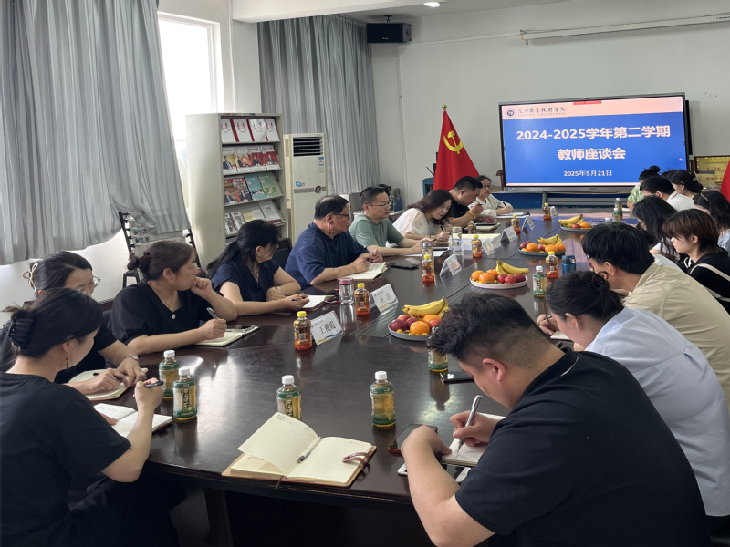 5月21日下午,我校召开2024-2025年度第二学期期中教学检查教师座谈会。副校长杜蜀宾出席会议,教务处、学工处、后勤保卫处相关职能部门负责人与各教学单位的14名教师代表展开深度座谈。