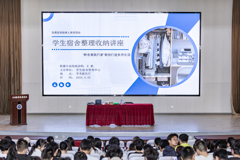 焕新同行:空间焕新,爱心同行。通过举办宿舍收纳专题讲座,以“理论+案例+实操”的多元形式,系统讲解了宿舍空间规划、物品分类整理等实用技巧,让同学们在细致入微的指导中豁然开朗,把宿舍打造成整洁舒适的温馨小窝。