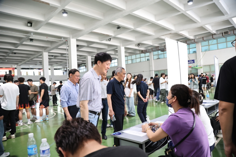 活动现场,校党委书记吴永平、校长朱开永、副校长杜蜀宾等校领导亲临指导工作,深入各企业展位,与用人单位亲切交流,详细了解岗位需求和招聘情况,并鼓励在场学生积极应聘、把握机遇。各企业代表积极开展招聘活动,与应聘者热情互动,耐心解答各类咨询提问。毕业生们主动投递简历,与心仪企业深入交流,展现出扎实的专业素养与积极的求职态度。党政办、学工处、教务处、后勤保卫处等职能部门协同联动,为双选会提供了强有力的组织保障与周到服务。会场气氛热烈。