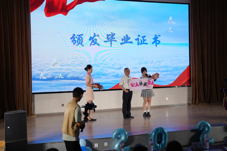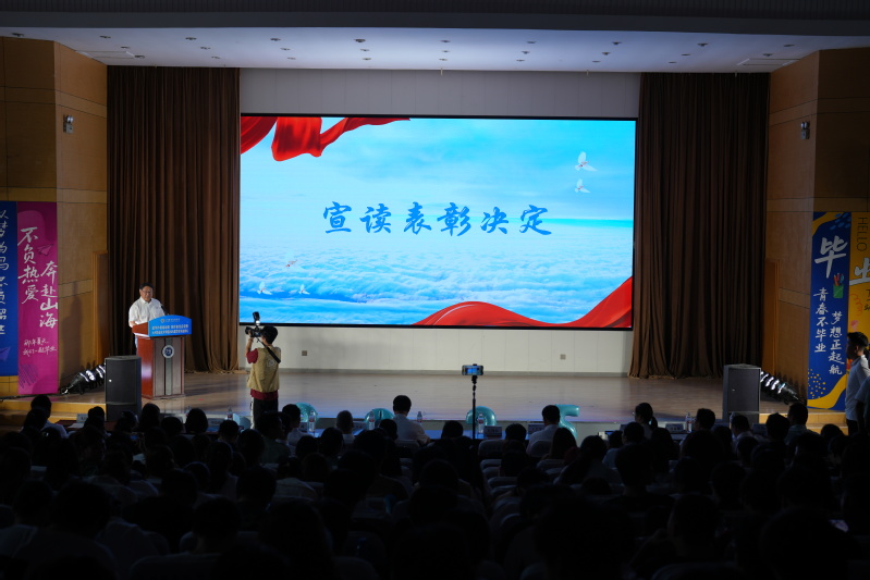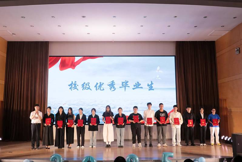 副校长杜蜀宾宣读了2025届优秀毕业生决定。141名优秀毕业生和7名单项先进个人接受全校师生的祝贺表彰他们在校期间的优秀表现,树立了榜样力量。优秀毕业生们有序登台,党委书记吴永平为他们一一颁发证书并合影留念。