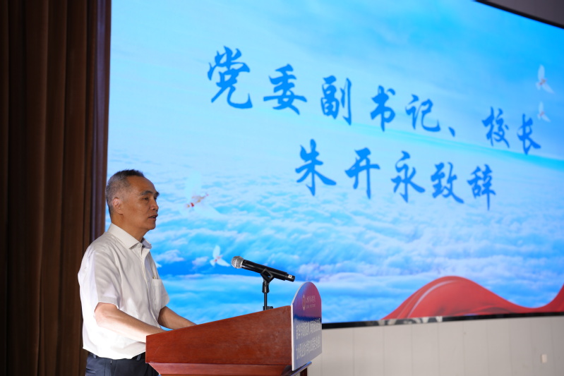最后,校长朱开永致辞,他向全体2025届毕业生表示热烈祝贺,充分肯定了他们在校期间的努力与成就,将校训精神融入点滴实践,让青春在三年奋斗中熠熠生辉,并致敬全体辛勤耕作的教育工作者。他期望同学们以坚韧为骨锻造钢铁意志、以勤学为翼翱翔知识天空、以感恩为魂传递温暖力量,做一个心怀梦想、勇毅前行的奋斗者,在时代的舞台上绽放属于自己的光彩。