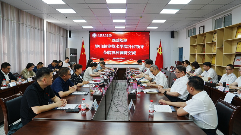 7月2日下午,钟山职业技术学院校长、省政府参事蒋伏心,党委书记、政府督导专员翟天灵率团来我校调研交流。我校党委书记吴永平,党委副书记、校长朱开永,党委副书记、纪委书记张超,副校长杜蜀宾以及党委委员、相关二级学院党支部书记、相关职能部门主要负责人参加活动。交流会在主913会议室举行,党委书记吴永平主持。
