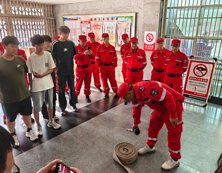 培训环节,特邀智慧消防工程师杨涛现场授课,内容聚焦校园高频风险点,系统讲解了隐患成因和防范对策,演示了灭火器操作技巧、消防面罩快速佩戴方法、消防水带连接和使用要领。实战环节,志愿消防队员们和师生代表重点围绕“落叶焚烧引发火情”、宿舍楼“电路短路起火”综合疏散救援和消火栓在火情中的使用等三个项目的重点演练,操作迅捷高效,环节衔接流畅,切实提升了应对突发火情的处置效率与协同作战能力。