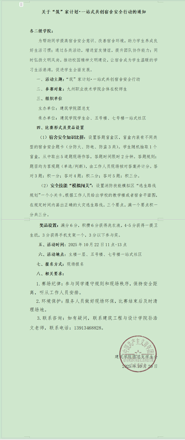 关于“筑”家计划・一站式共创宿舍安全行动的通知