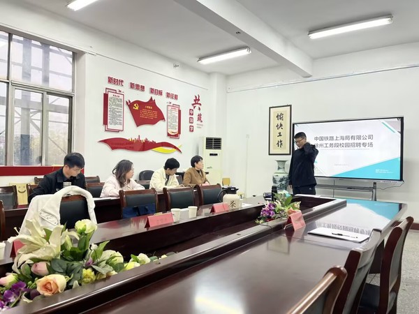 2025年11月7日,中国铁路上海局集团有限公司徐州工务段4位招聘专员走进我院对2026届毕业生开展专场校园招聘。经过前期宣传,报名筛选,我院最终有19名建筑类专业毕业生进入面试环节。
