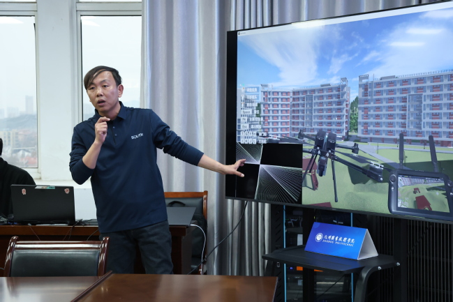 南方测绘集团沪宁分公司教育事业部总监任大勇则进行了《元宇宙智能实训系统功能展示》,通过生动演示,让师生直观感受了虚拟仿真、数字孪生等技术在测绘与建造教学实训中的创新应用,引发了在场师生的浓厚兴趣。