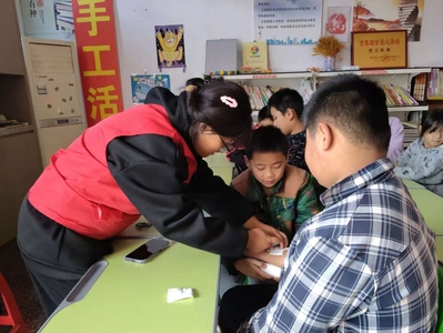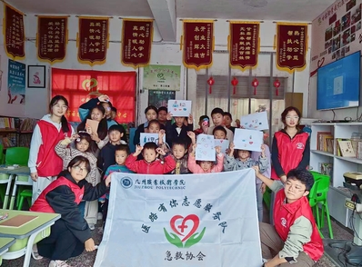 2025 年 10 月 18 日上午 9 时,我校急救社团组织志愿者走进贾汪区甘霖助学公益书吧,为贫困儿童开展 “童绘安全,手创健康” 急救科普志愿服务活动。