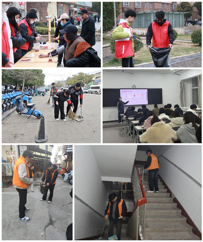 校园外,志愿者走进无名山社区、凤凰山社区、樵村社区,开展敬老助老、公益宣传、环境清洁、便民服务等实践活动,并在樵村小学设立护学岗,守护学生平安上下学,以实际行动服务基层、奉献社会。