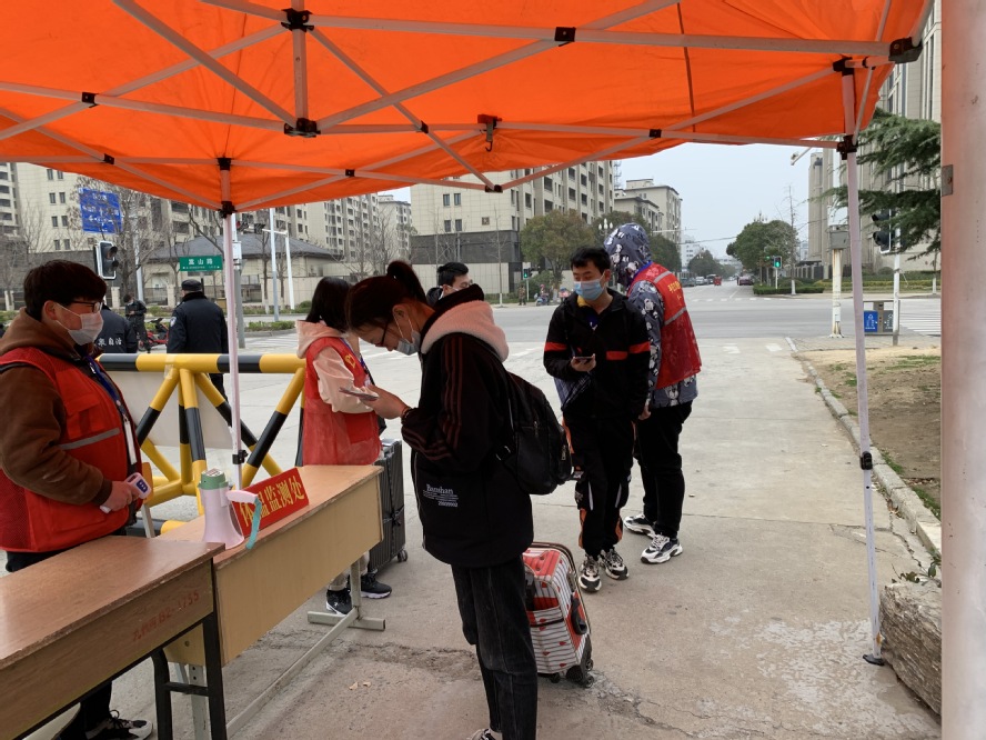 疫情面前显担当,志愿服务展风采。根据学院春季复学防控工作总体部署,院团委根据返校安排,进行了志愿者招募。广大团员青年发挥“党有号召,团有行动”的优良传统,在开学返校的关键时刻,不畏艰险、冲锋在前,踊跃投身学校开学返校的防控工作,“守住门”“测好温”“管住人”“做好事”“应好急”。几天时间内,开学返校期间,院团委、各系院团总支组建志愿者队伍近30名。根据“一测二核三查四通过”的任务需求,志愿者们分赴各个岗位,累计志愿服务时长达720余小时。天还没亮,开学报到综合服务志愿者们便到达了东门报到处做好各项准备。有的把好核验通道,指导同学们操作验码流程;有的当起“勤务兵”,帮助同学搬运大件行李……他们以自己的行动热情迎接青春伙伴,与学校一起守好家园第一关口,成为了校园内随处可见的那一抹最靓丽的“志愿红”。“请注意保持间距,排好队,谢谢!”核酸检测志愿者时刻提醒同学们做好自身防护、保持安全距离,用情用心维护好核酸检测秩序。院团委副书记王洁老师说道:在这次春季返校报到工作中,我院青年志愿者们勇挑重担、听从指挥、坚守岗位、热情服务,高效完成了特殊时期的特殊任务,他们用爱心和奉献赢得了学院师生的一致认可和肯定。