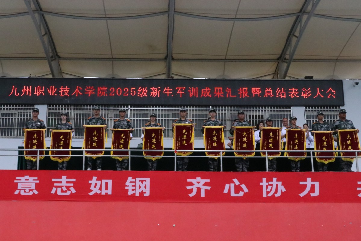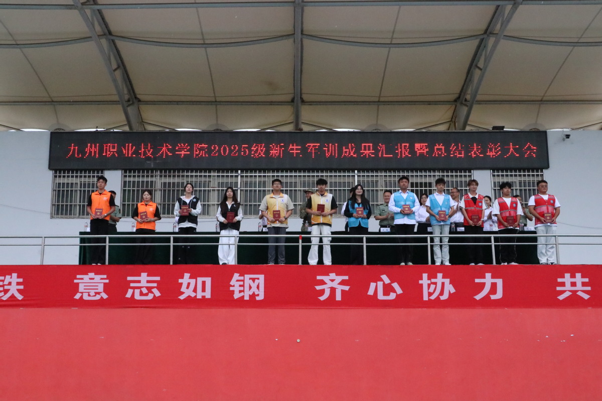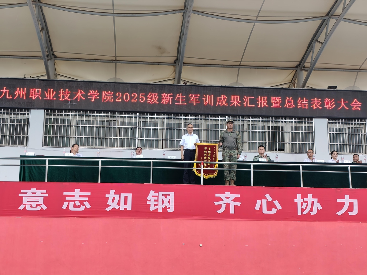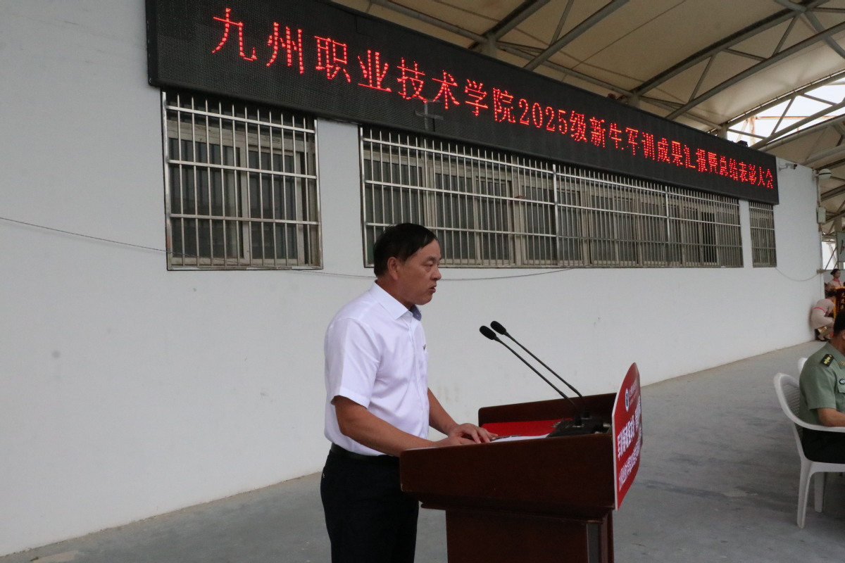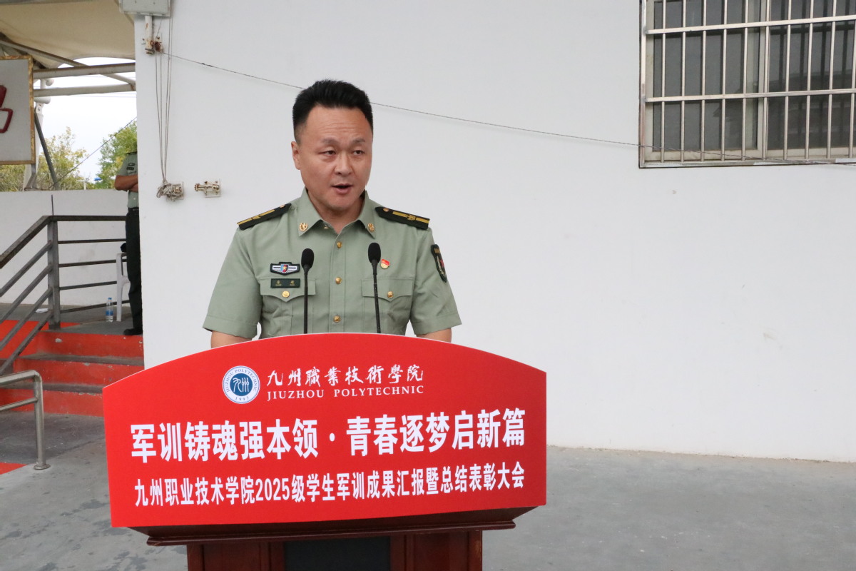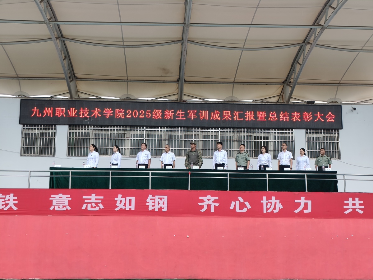 秋高气爽时节,2025年9月18日是“九一八事变”94周年,在这个特殊的日子,九州职业技术学院2025级新生军训成果汇报暨总结表彰大会隆重召开。93125部队副参谋长赵立引,学校党委书记吴永平、校长朱开永、党委副书记、纪委书记张超、副校长王长生出席大会;学校各行政部门及二级学院院长、全体承训教官、指导员与3000余名新生齐聚,共赴这场青春盛典,大会由军训团团长、学工处处长朱炳丞主持。