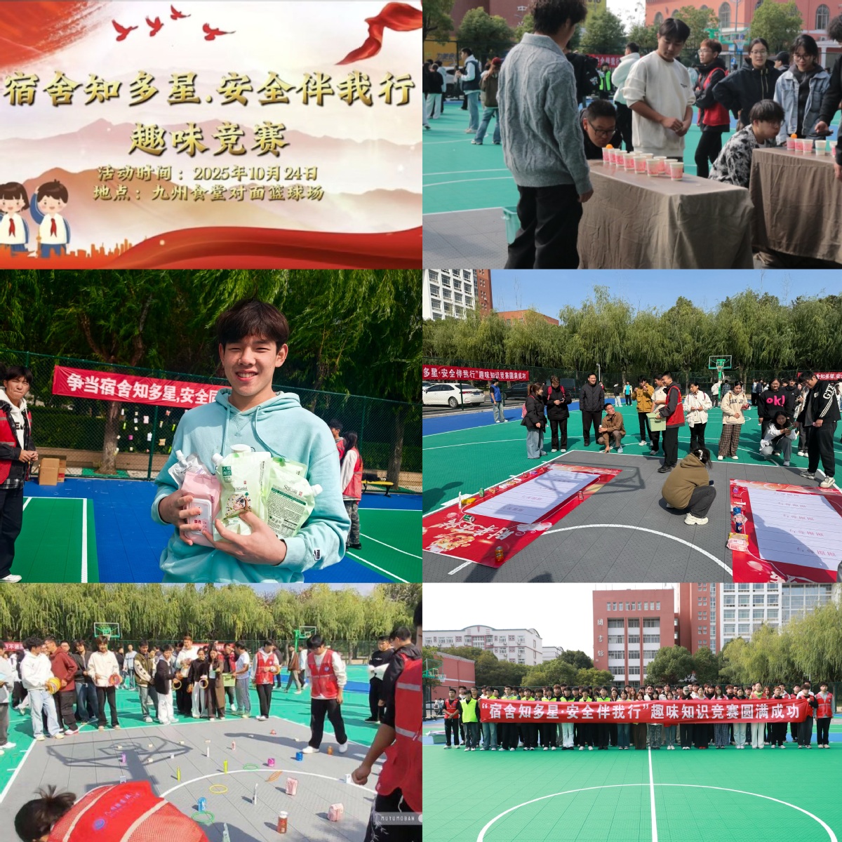 本次文化节聚焦宿舍育人功能,设置四大核心活动,覆盖不同群体需求:“文明雅舍·风尚校园”系列评比、“匠心守护·技能担当”宿管员技能大赛、“墨韵润宿舍·书香满校园”书法绘画大赛,分别从集体文明、职业技能、文化素养维度丰富活动内容;而由宿舍管理中心主办、机电与汽车工程学院承办的“宿舍知多星·安全伴我行”趣味知识竞赛,已于10月24日中午在校园篮球场率先开展,成为文化节的亮眼开篇。